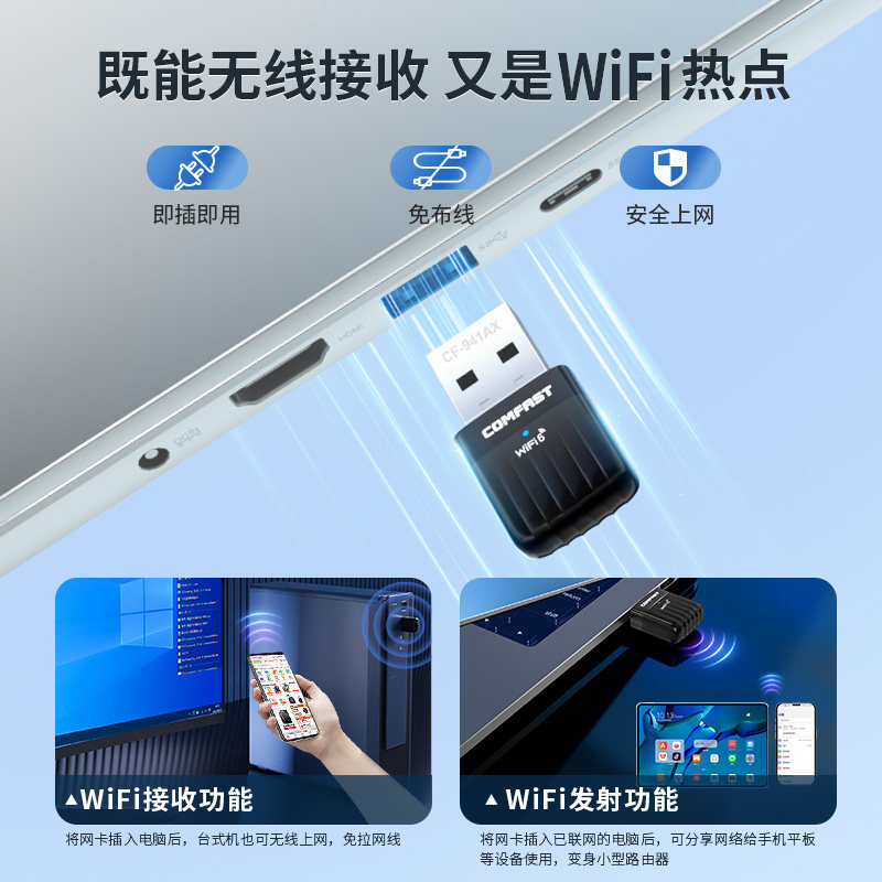COMFAST 无线网卡台式电脑wifi接收发射器笔记本电脑主机高速上网连接热点外置网络5G双频信号免驱动CF-941AX