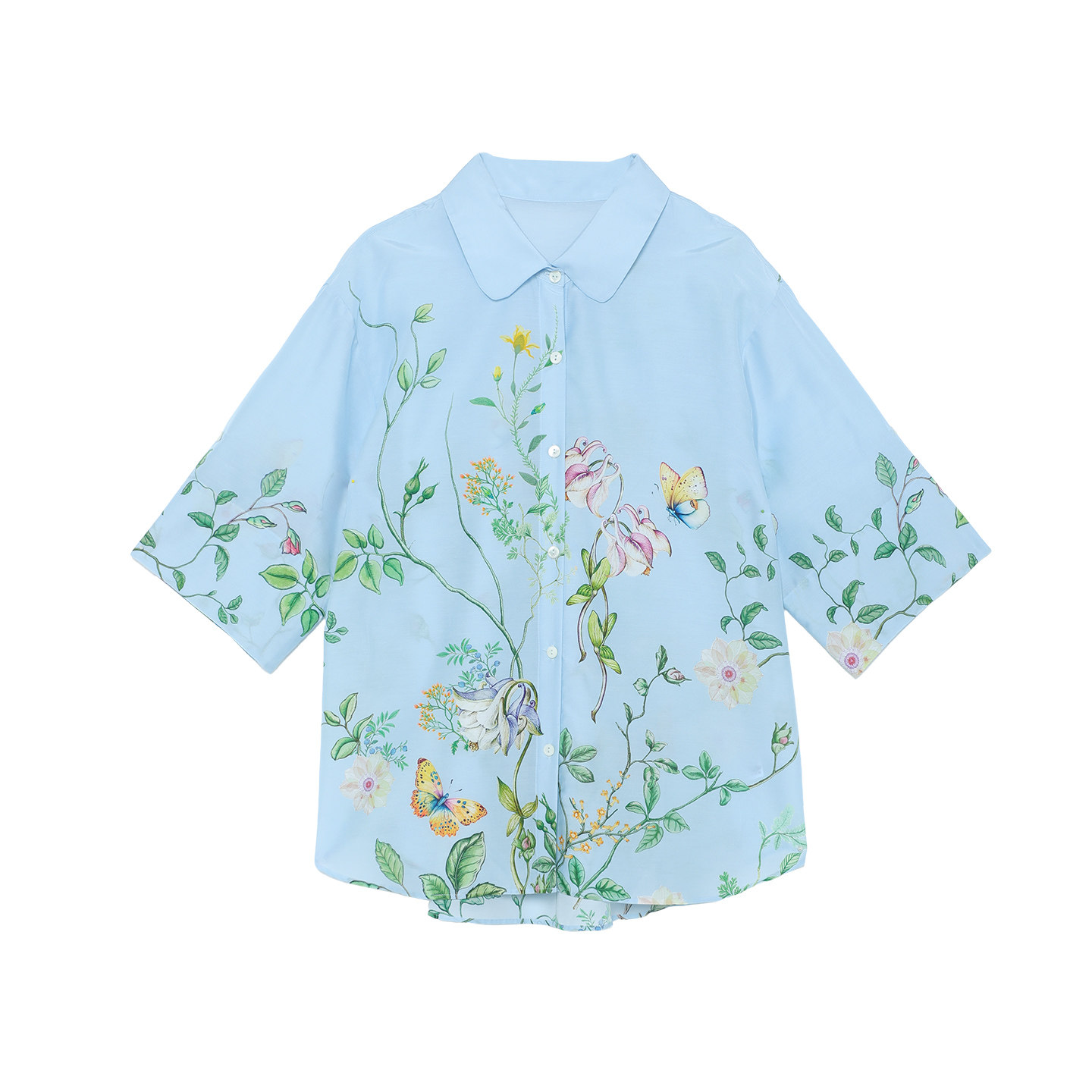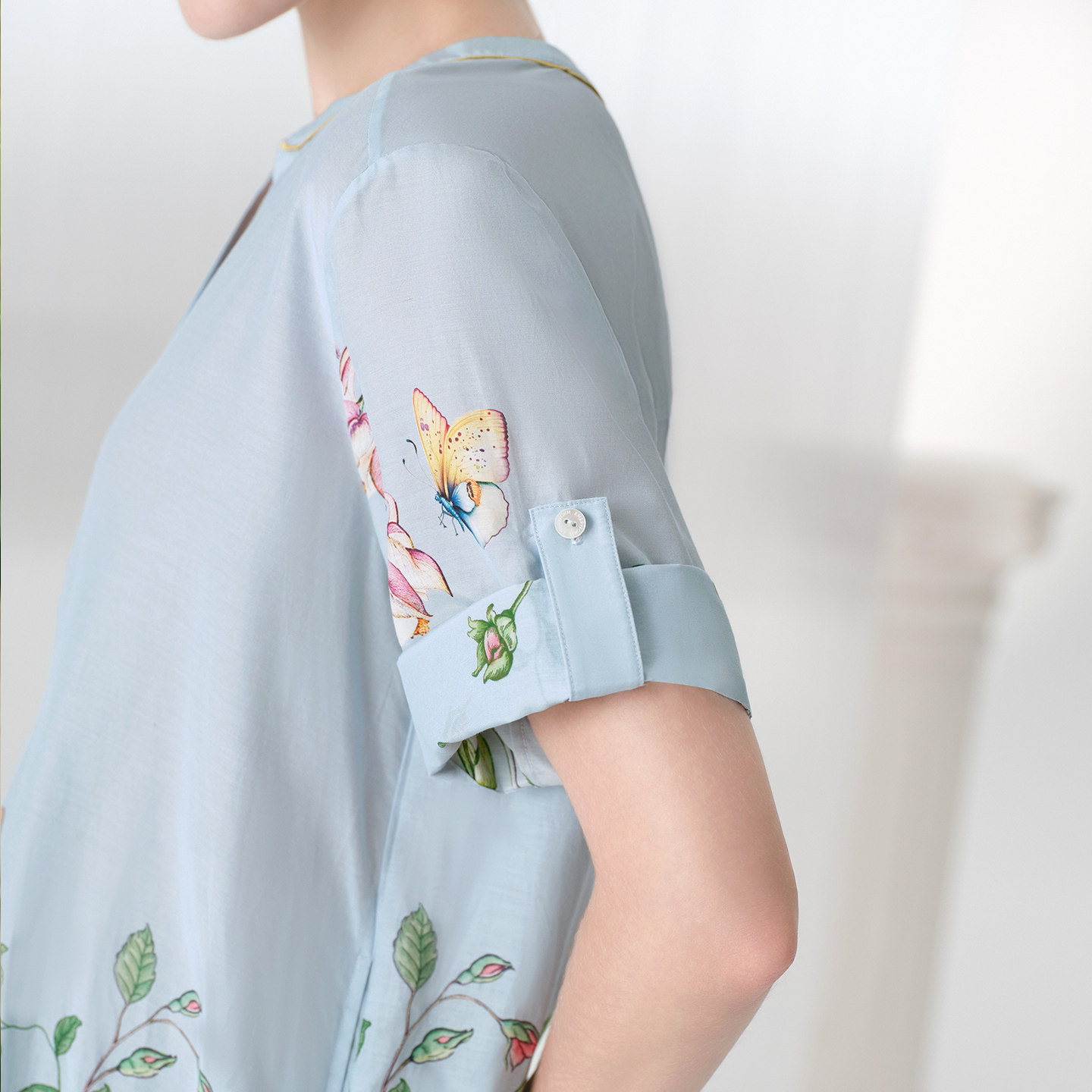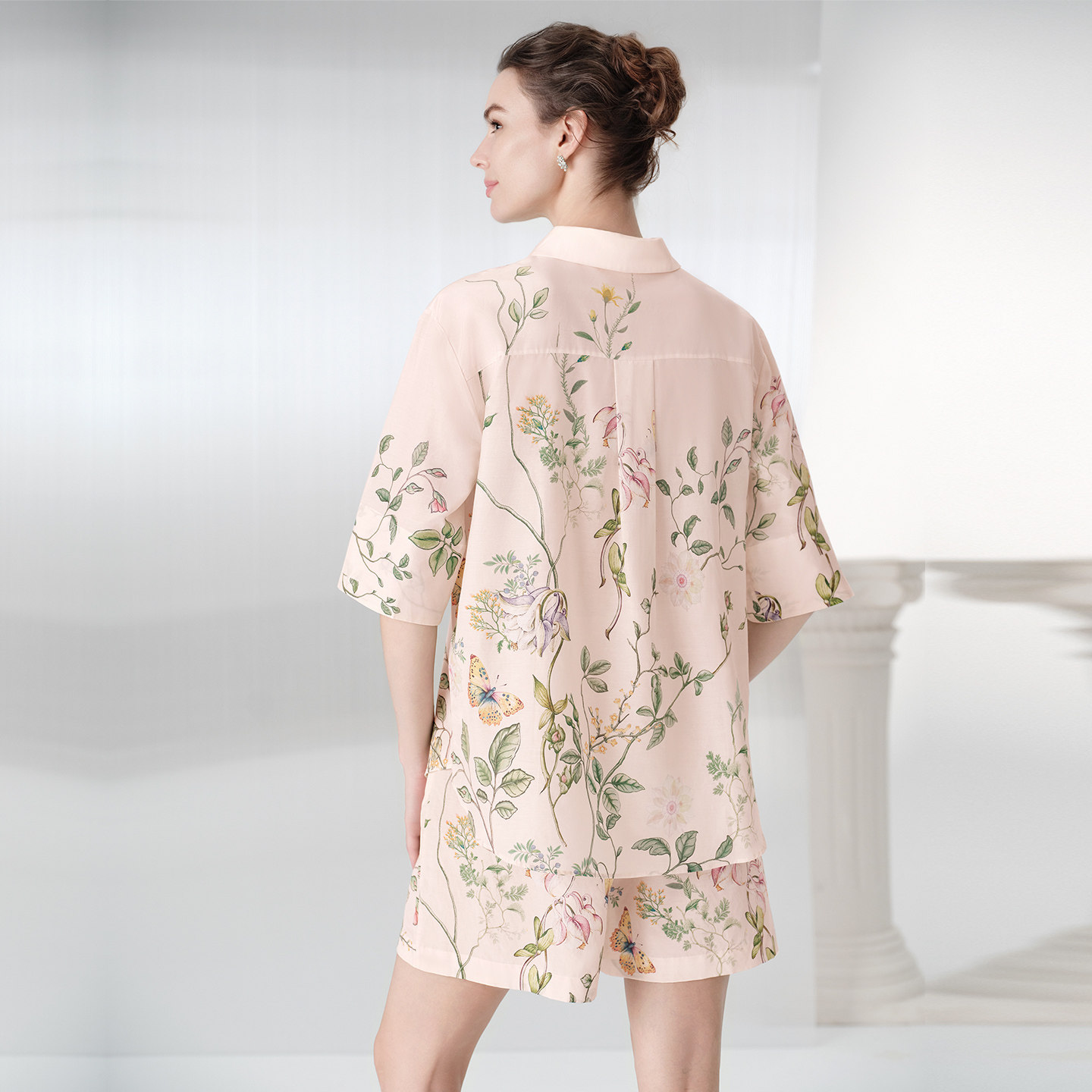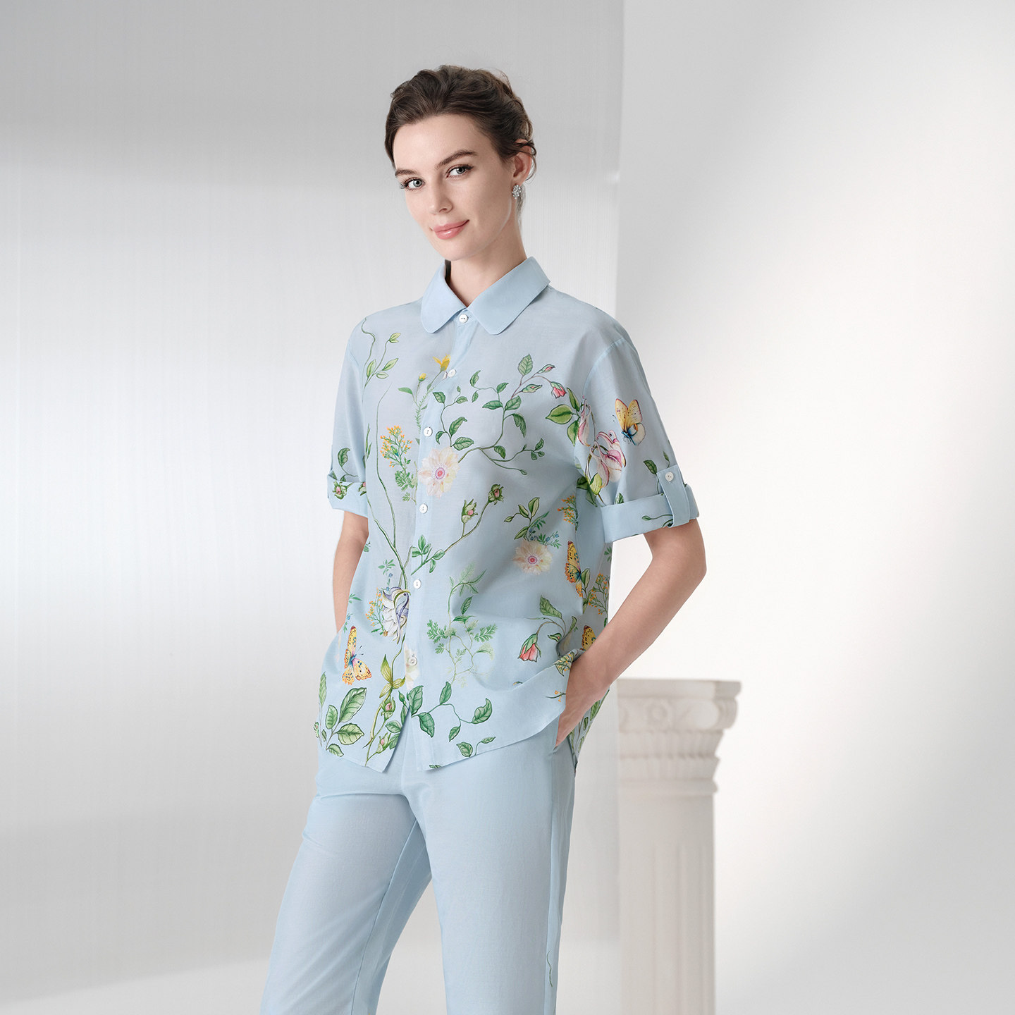 【桑蚕丝】安莉芳薄款睡衣上装夏季女士家居中袖棉质宽松翻领上装