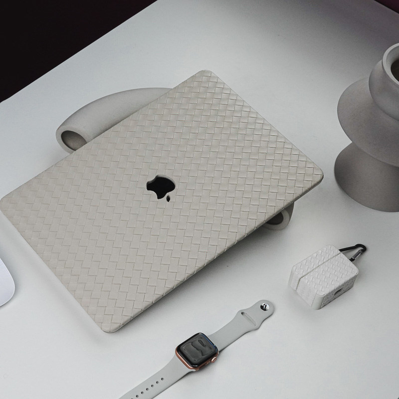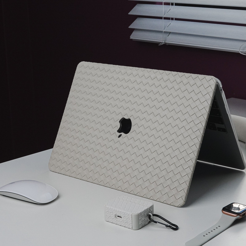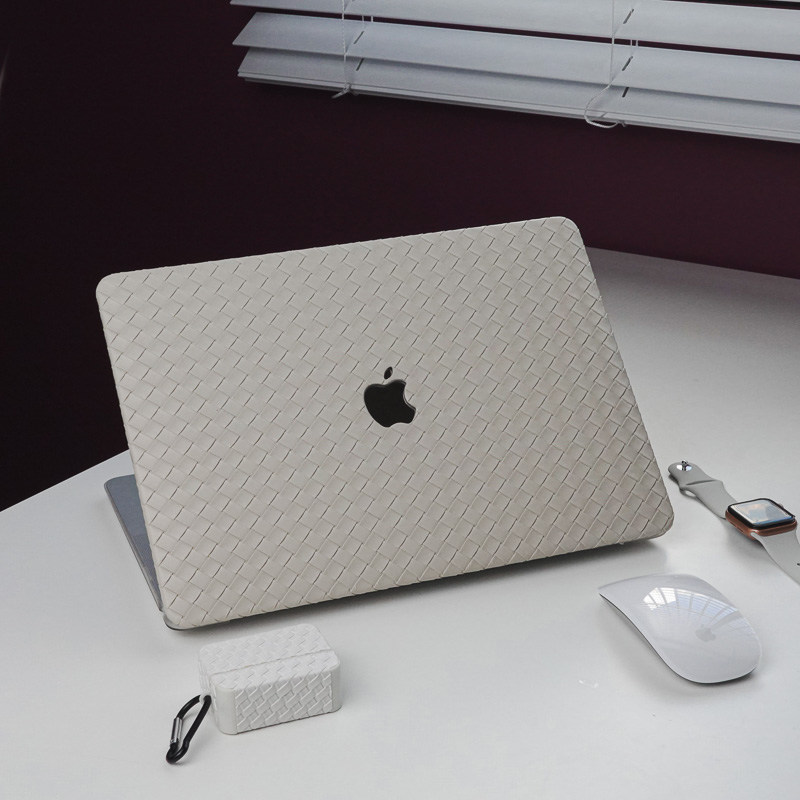 简约编织古董白皮革款气质mac13M1保护壳16寸壳macpro15保护套