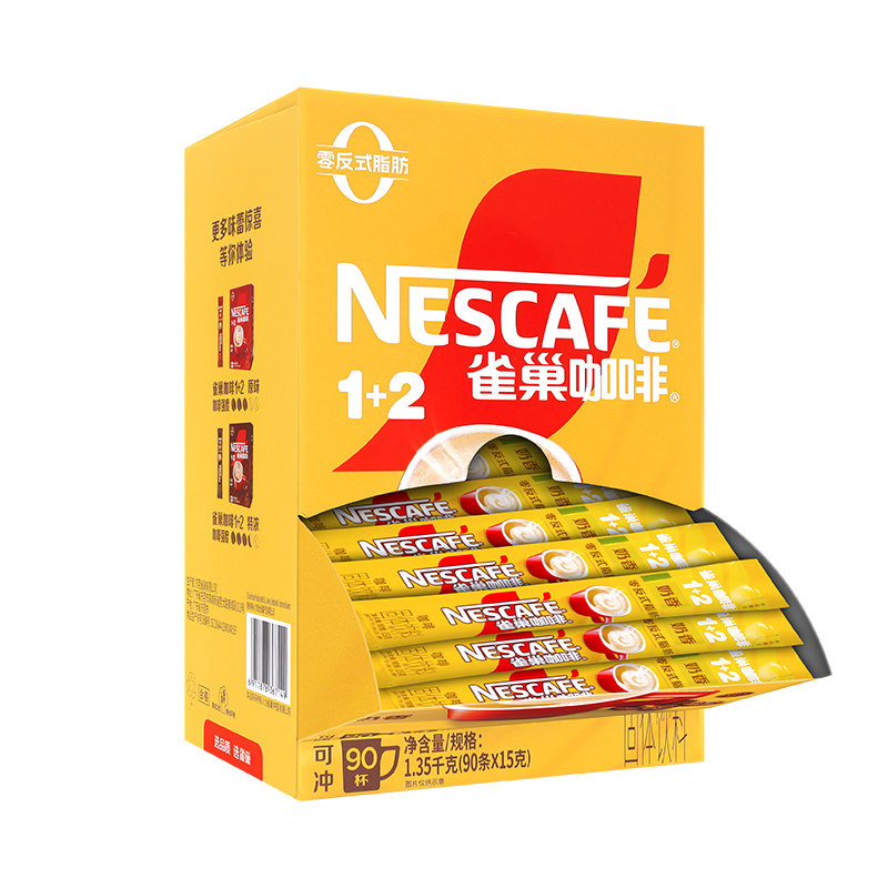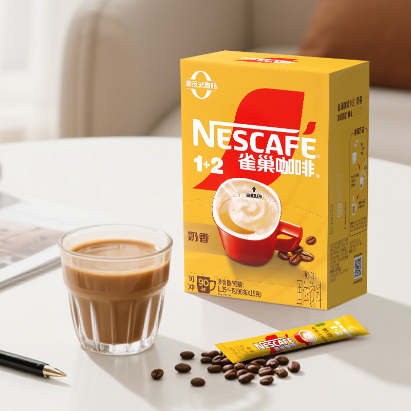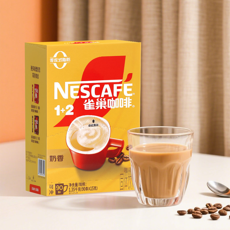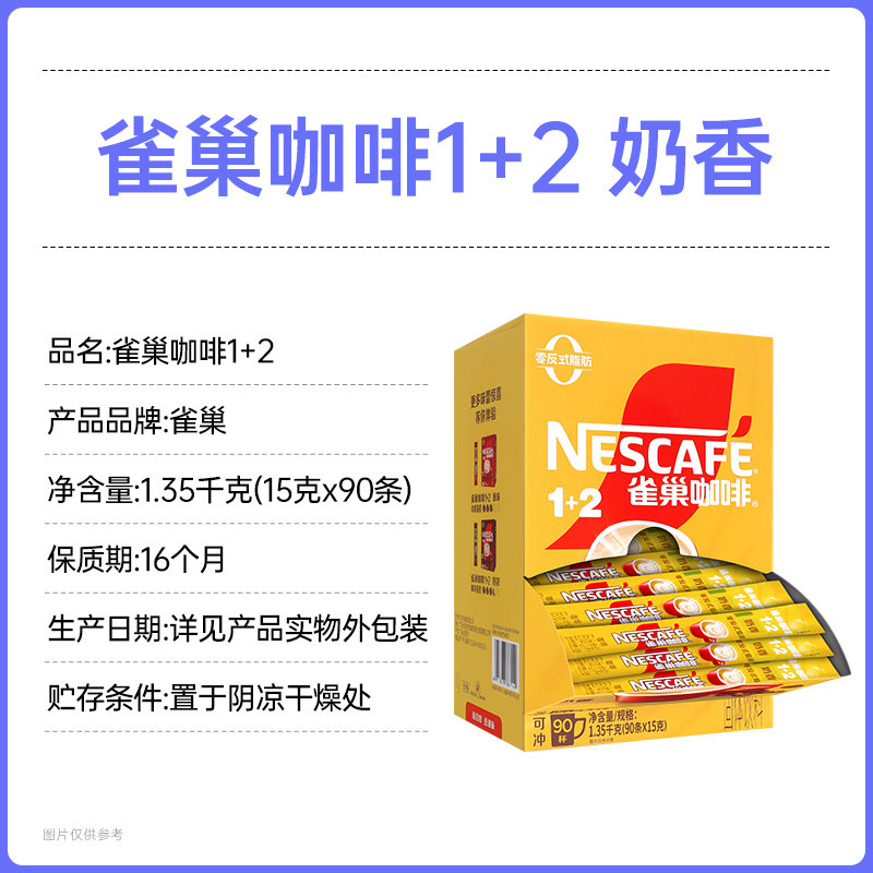 雀巢咖啡奶香15g*90条盒装三合一速溶咖啡提神即溶咖啡粉可冲90杯