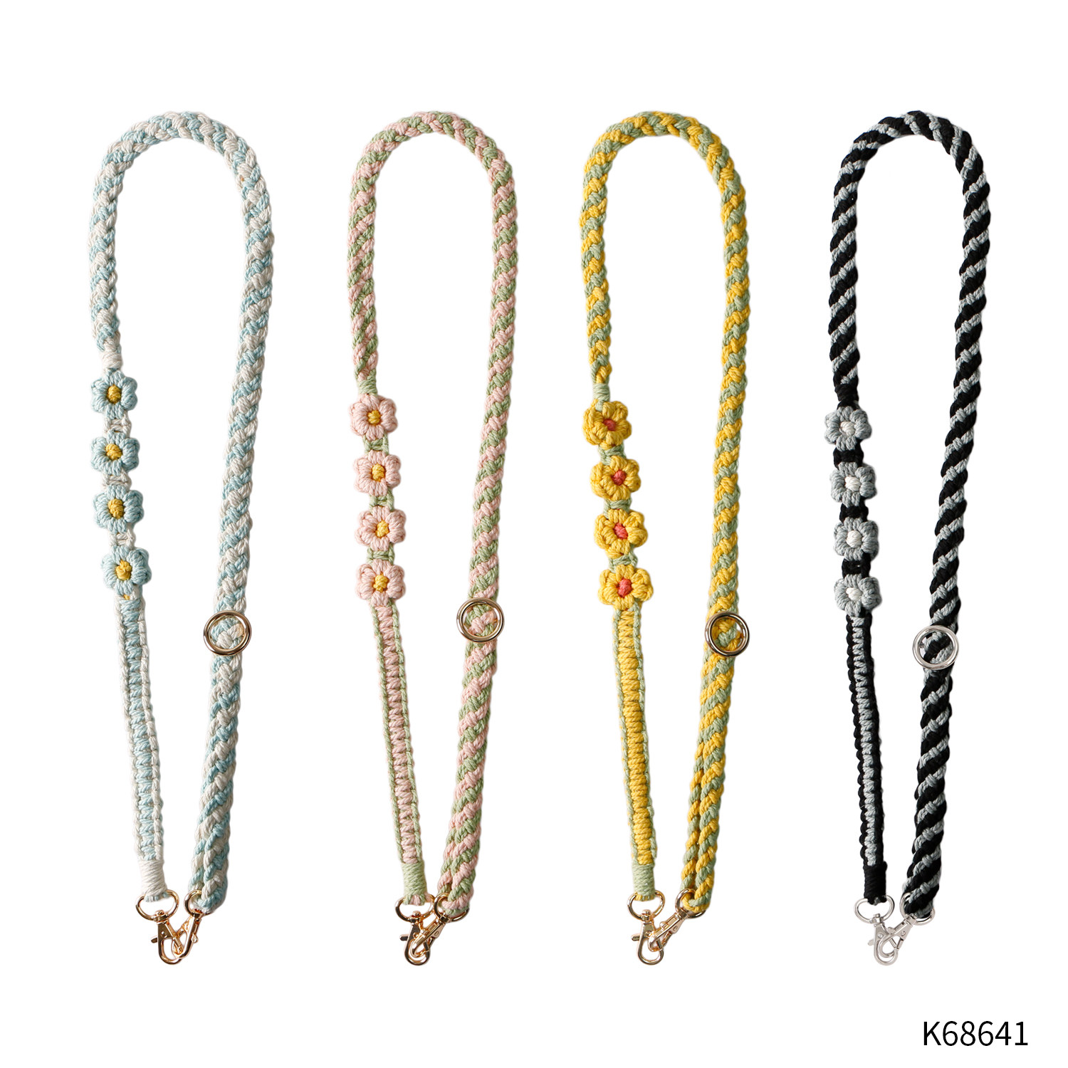 杰米波西米亚手工编织手机绳斜挎可调节斜跨花朵菊花小雏菊手机链