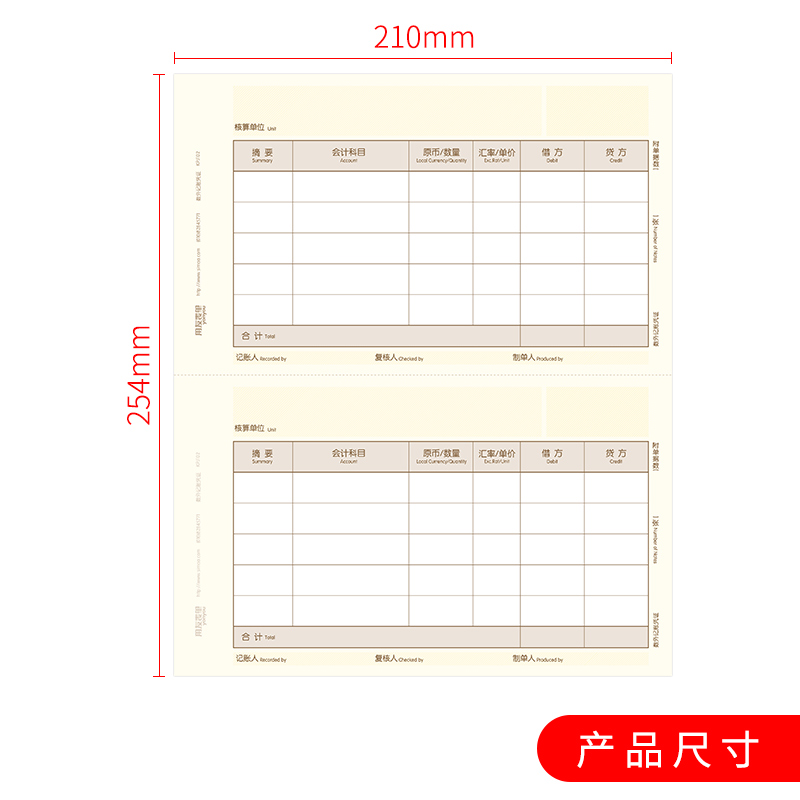 用友凭证打印纸 A4数量外币记账凭证纸KPJ101尺寸210*254记账凭证纸用友软件 t3t6 nc t+ u8好会计适用KPJ102