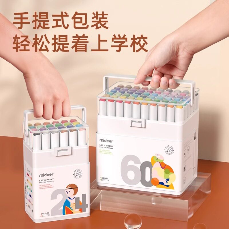 mideer弥鹿丙烯马克笔直液式小学生美术专用画笔软头36色儿童速干绘画收纳盒生日礼物无毒涂鸦幼儿园24色彩笔