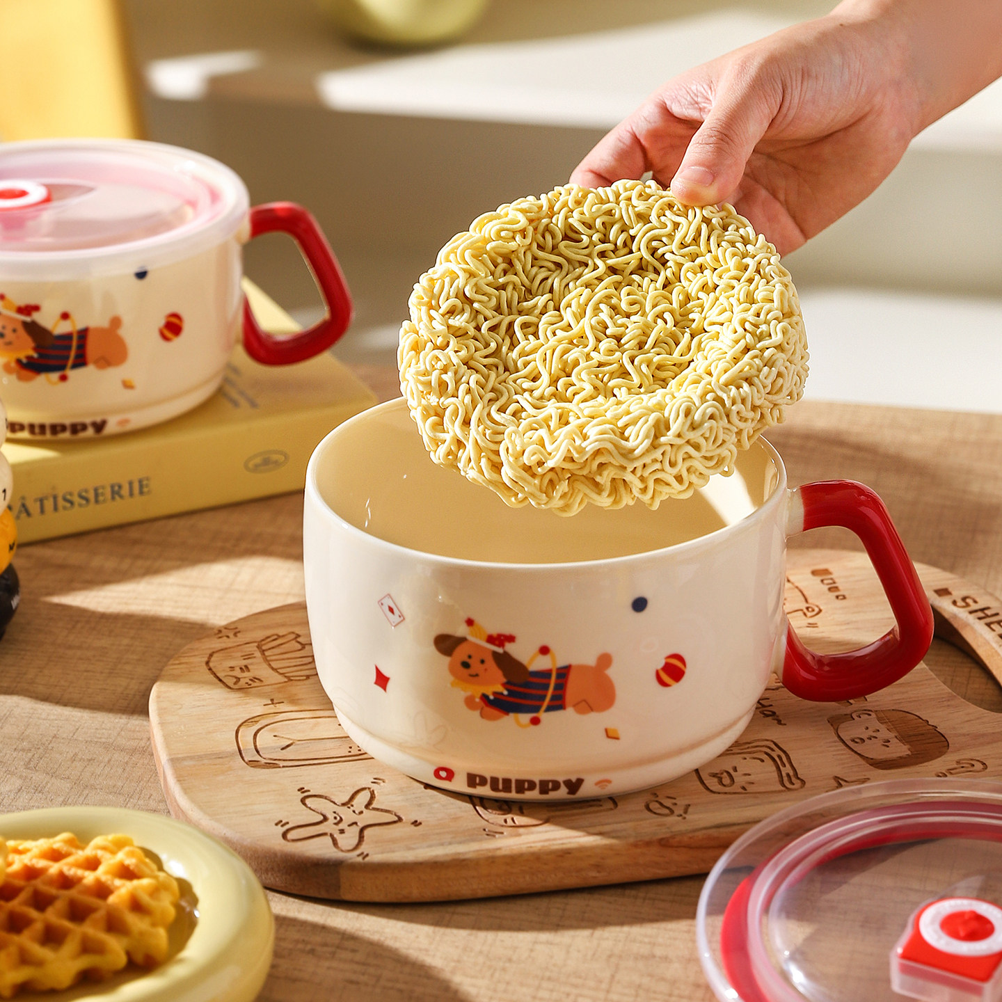 可爱卡通陶瓷泡面碗带盖双耳汤碗学生宿舍家用2025年新款一人食用
