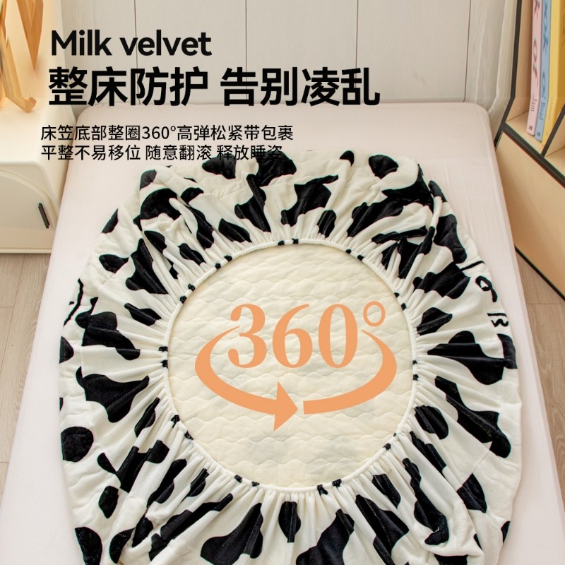 2025新款牛奶绒夹棉床笠加厚保暖三件套枕套床垫保护套床褥套全包