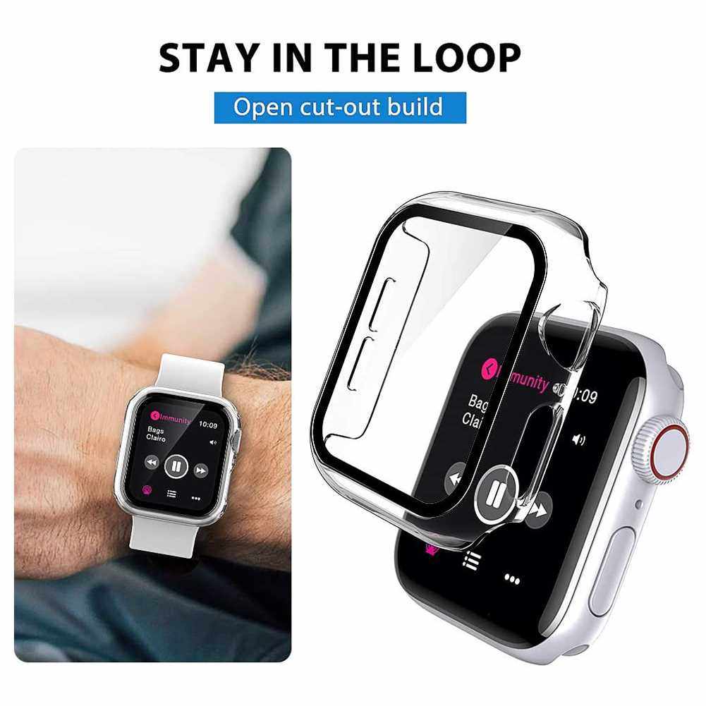2pcs Protective Case for Apple Watch 4 5 6 Tempered Glass Sc