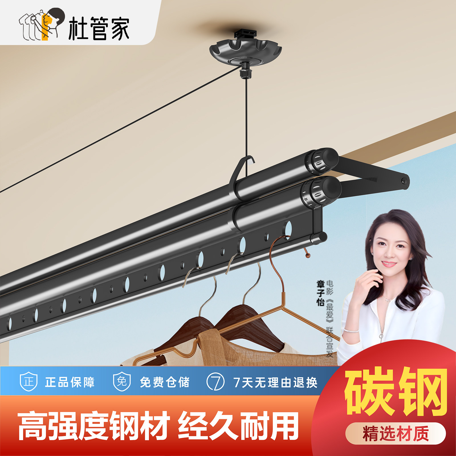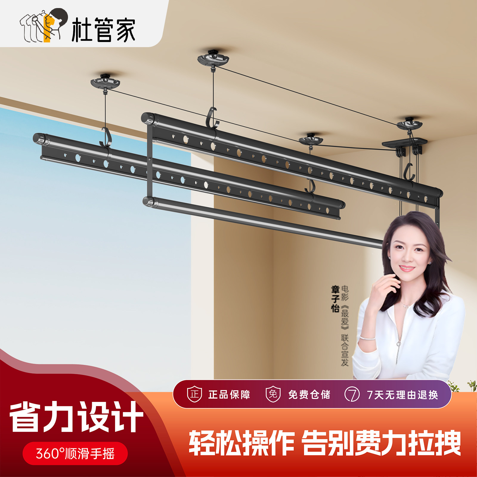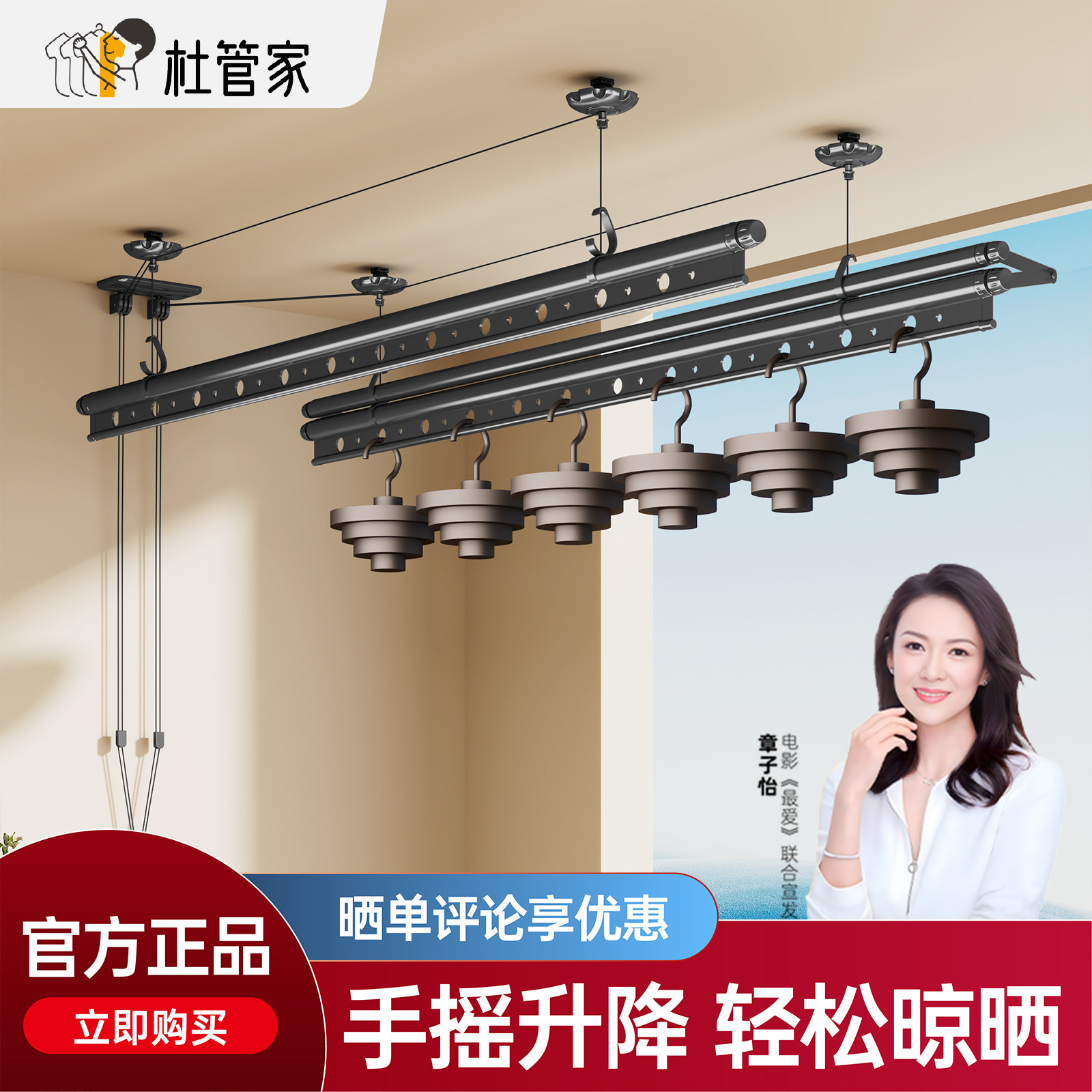 杜管家晾衣架阳台手摇晾衣杆双杆式室内家用自动折叠晒被凉衣架