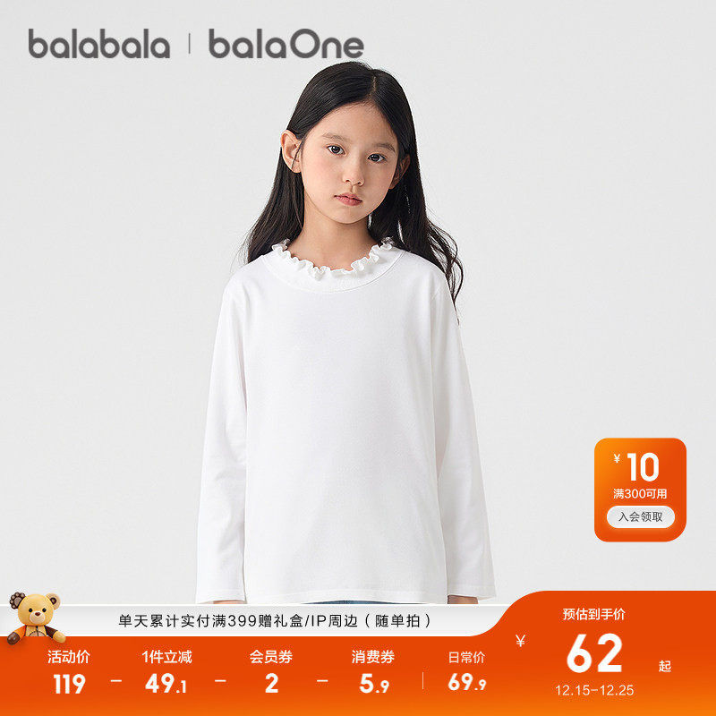 巴拉巴拉童装儿童长袖t恤女童2025新款秋冬装大童翻领上衣百搭潮