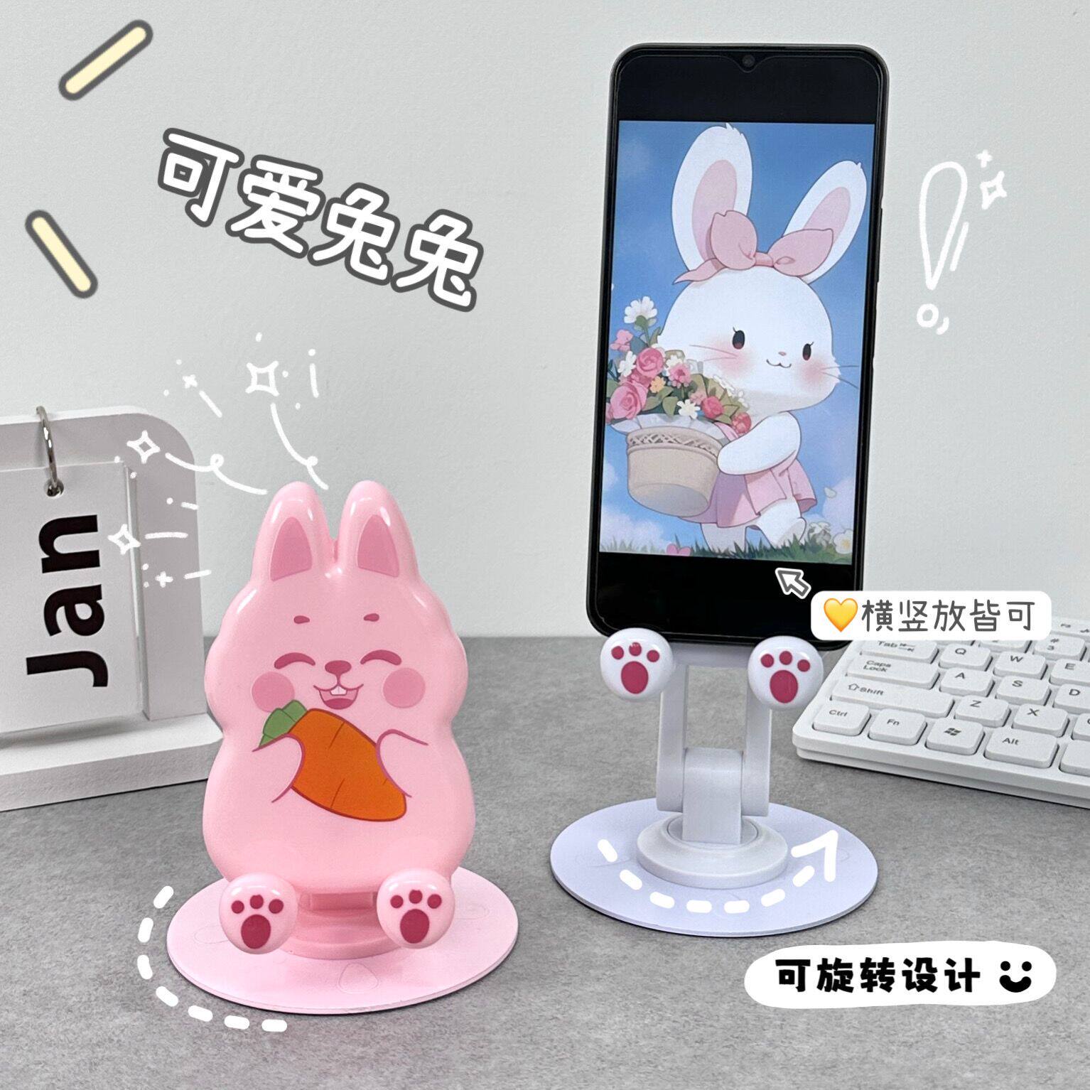 手机支架桌面卡通可爱小兔子2025新款床头手机支架草莓熊折叠便携