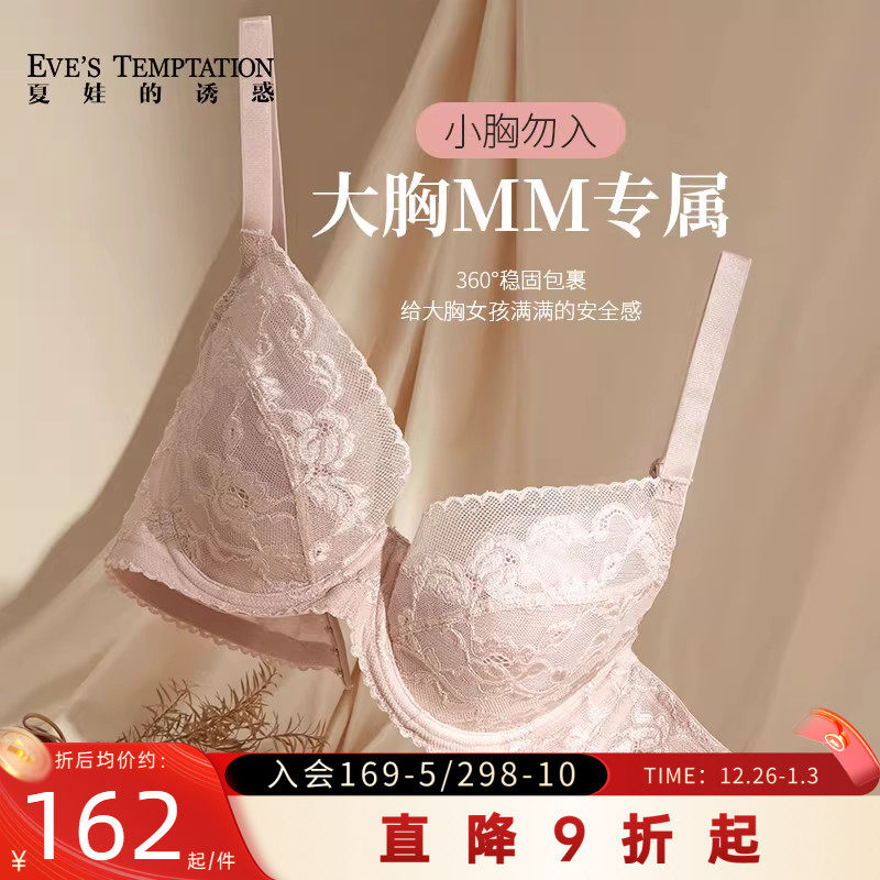 夏娃的诱惑大码文胸女200斤胖MM收副乳防下垂大胸显小内衣女薄款