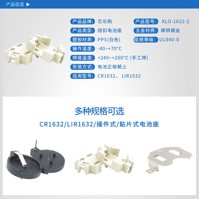 电池扣五金弹片插件贴片配件CR1632纽扣电池座CR1620通用3v系列