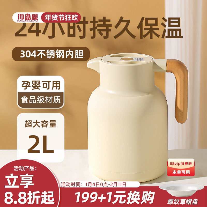 川岛屋保温壶家用大容量热水瓶办公室暖水壶不锈钢内胆保温水壶