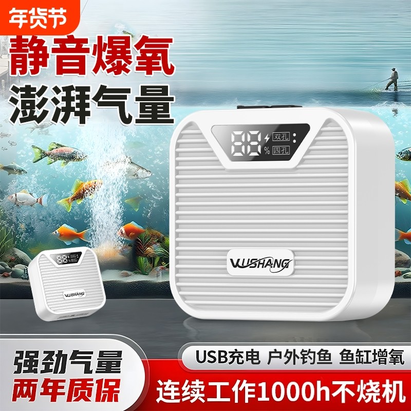 氧气泵鱼缸家用增氧机养鱼小型便携式充氧机静音增氧泵充电两用