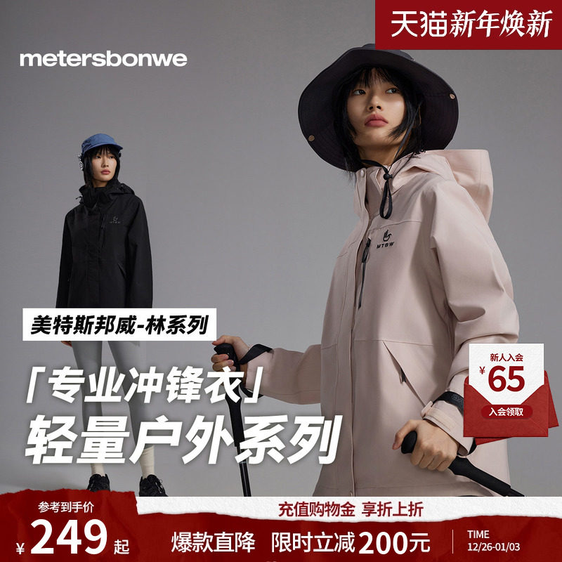 美特斯邦威冲锋衣男女同款冬季新款户外运动夹克防水连帽外套上衣