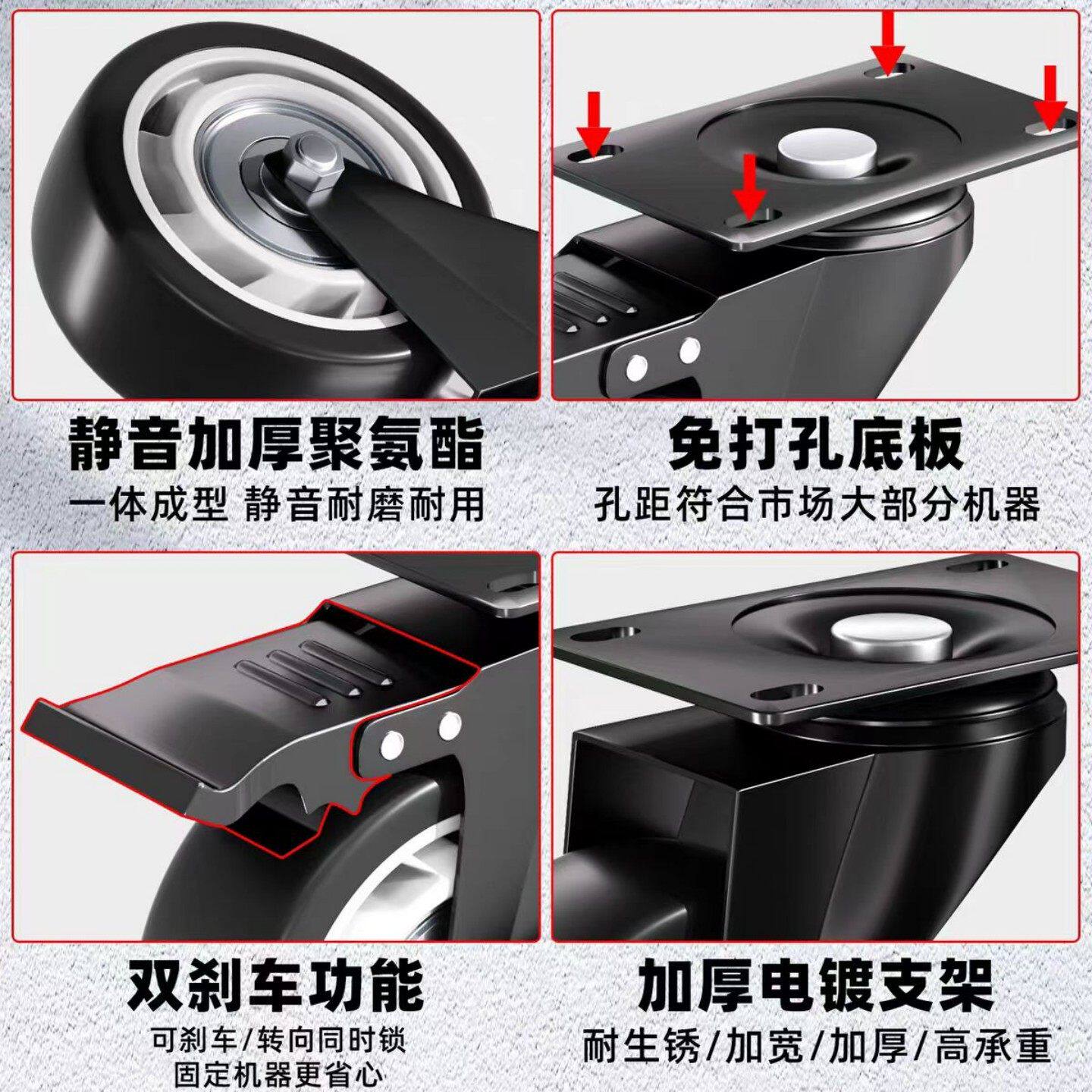 承重万向轮轮子大全超静音滑轮移动底座带煞车小推车定向脚轮滚轮