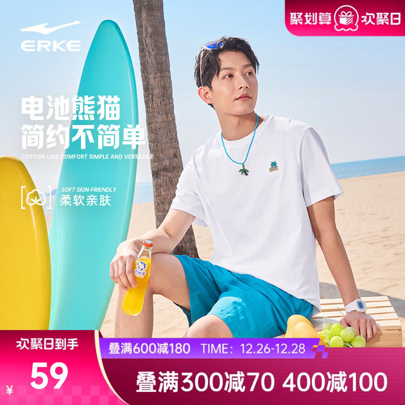 电池熊猫丨鸿星尔克于适同款t恤男夏季新款男士运动白色纯棉短袖