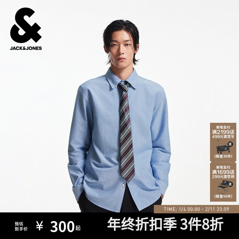 杰克琼斯男装秋季衬衫2025年新款纯色纯棉自带领带设计感长袖上衣