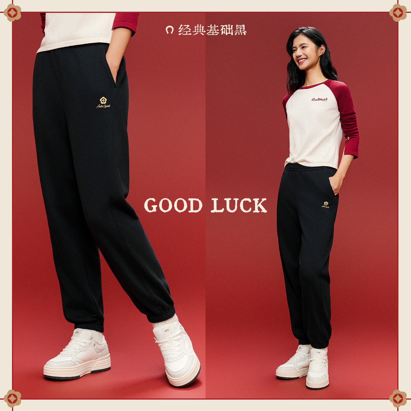 安踏好事发生丨"有钱花"加厚休闲卫裤女冬季新款百搭宽松运动长裤