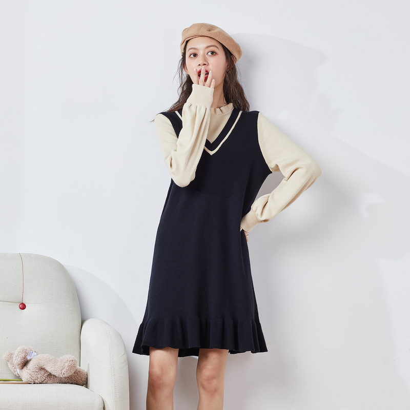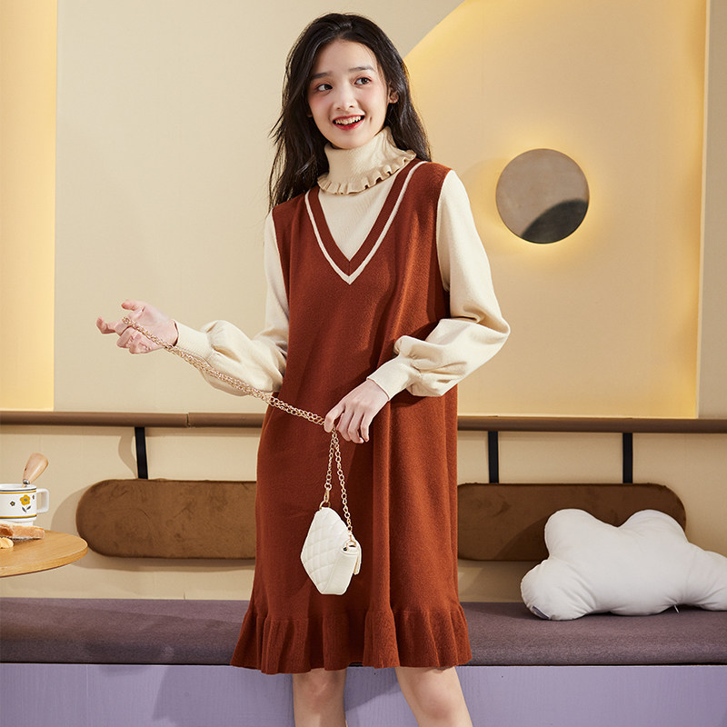 唐狮雅丹毛衣裙秋冬假两件针织连衣裙女打底小个子外套仙女装