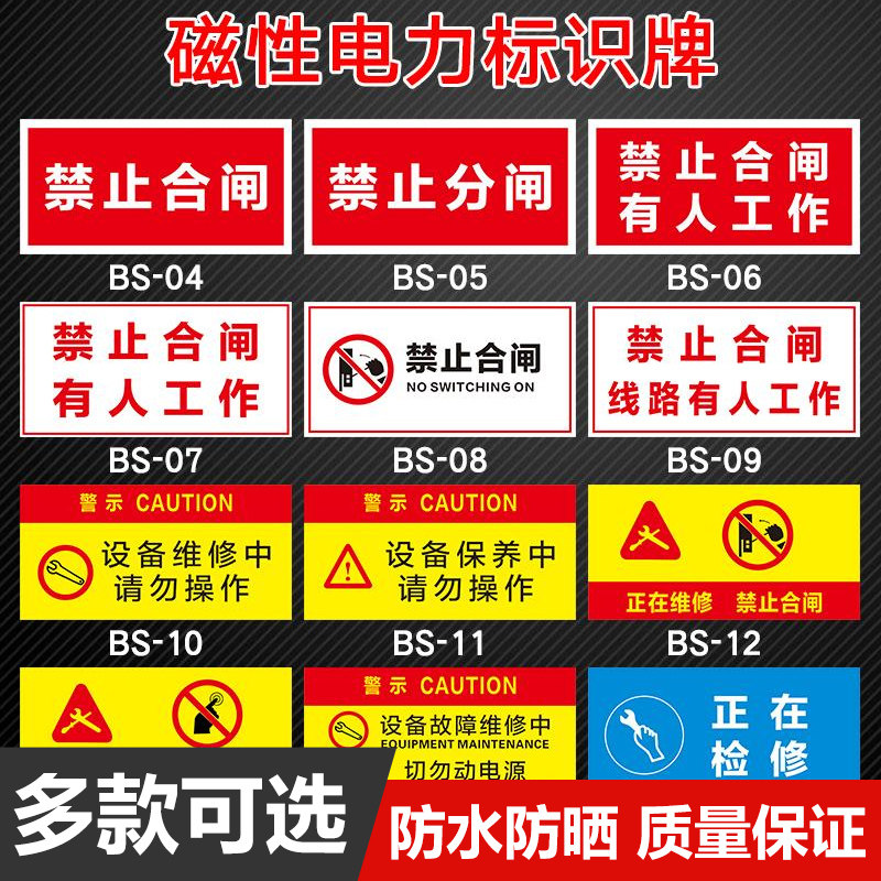 禁止合闸有人工作警示牌电力抢修供电监察标识牌设备保养磁性吸铁提示警告牌高压危电力安全线路停工维修标志
