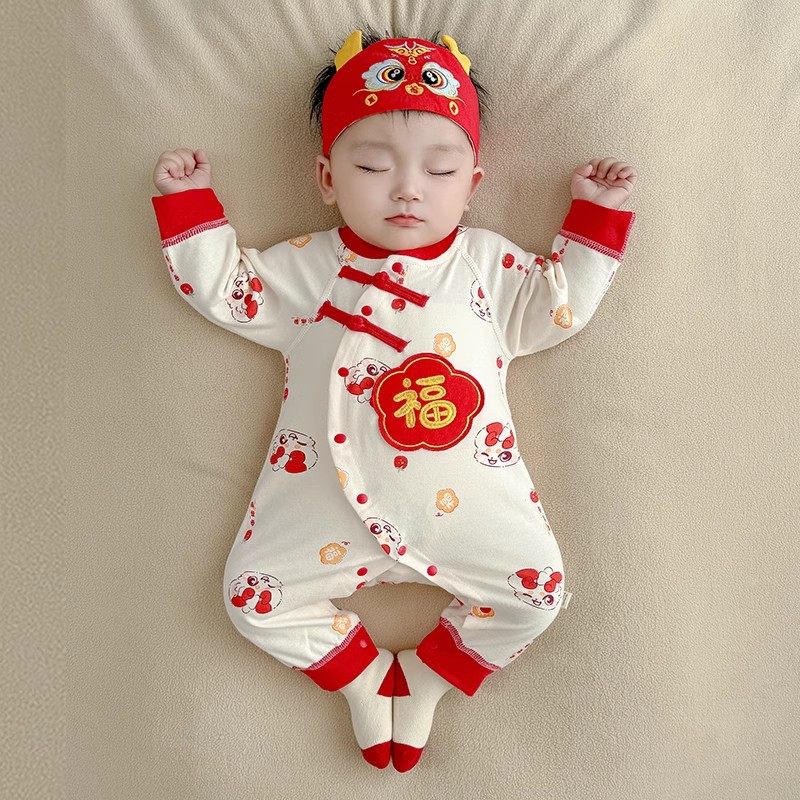 婧麒满月婴儿衣服秋冬无骨新生儿连体衣男孩女红色喜庆宝宝满月服