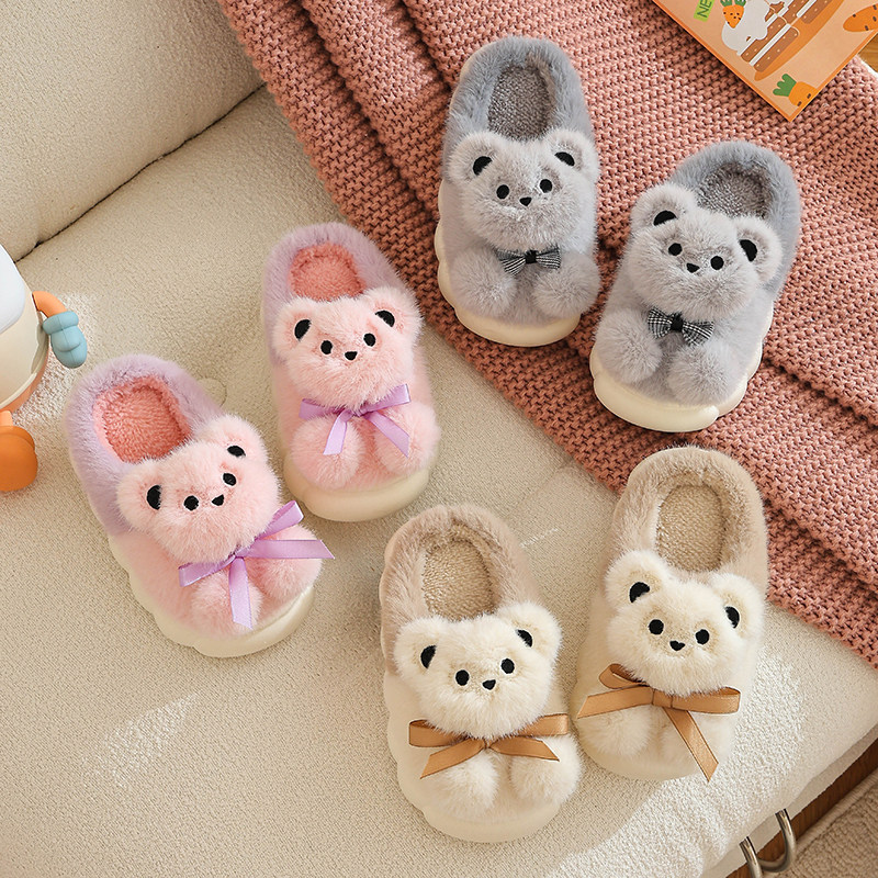 冬季棉拖鞋女童2025新款保暖软底防滑儿童小熊毛棉鞋亲子加绒加厚