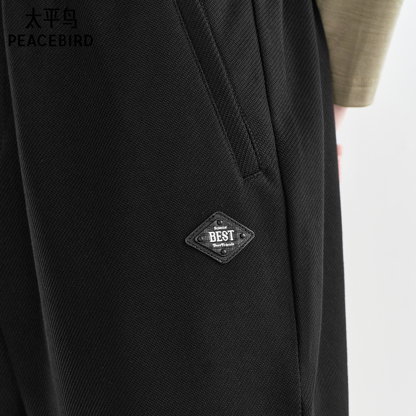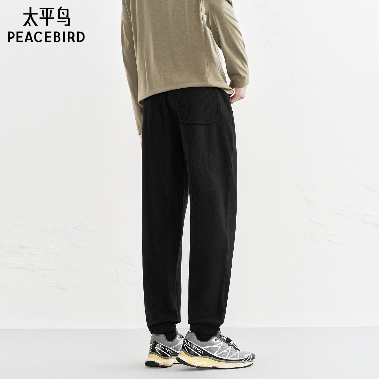 太平鸟男装 提花运动卫裤纯色通勤束脚裤男士休闲裤潮流