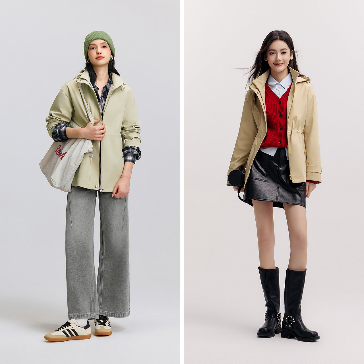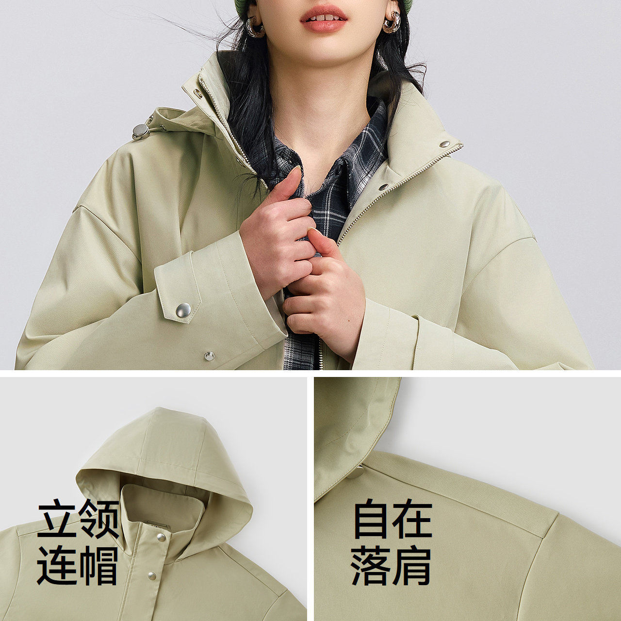 都市护身服|森马外套女春季中长款三防防风连帽落肩收腰通勤夹克