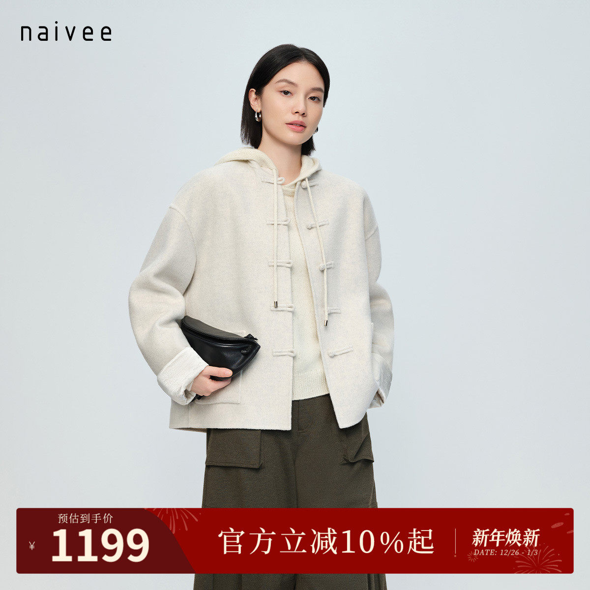 【东方呢】naivee纳薇25秋冬新中式立领金银丝绵羊毛大衣短款外套