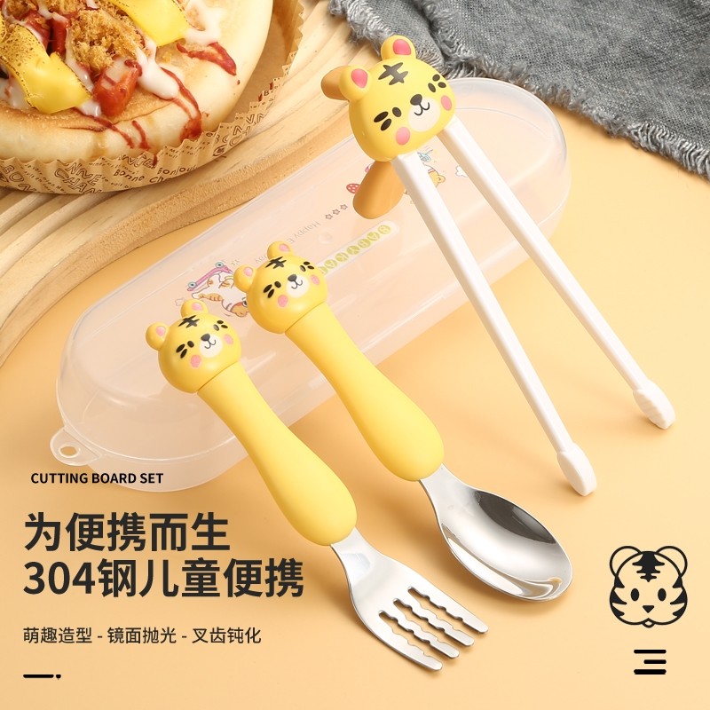 卡通304不锈钢儿童餐具宝宝叉勺筷回弹幼儿筷子家用吃饭训练勺子