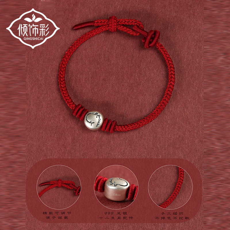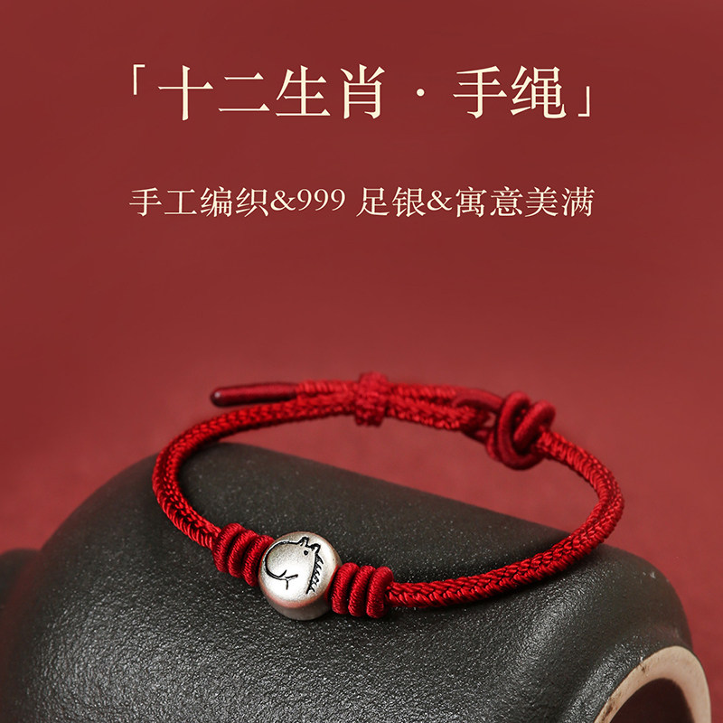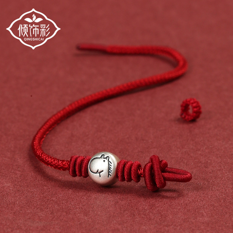 本命年999足银十二生肖红绳手链手工编织属马男女通用转运珠手绳