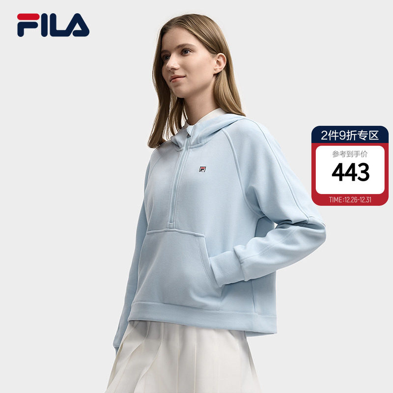 FILA 斐乐官方女子连帽卫衣2025冬新款时尚休闲插肩袖长袖上衣