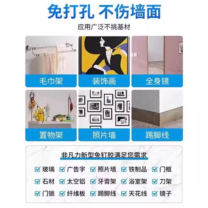 免钉胶水强力万能超粘墙面置物架厨房客厅卫生间免打孔胶水高强度免钉胶墙面专用粘得牢家用多用途万能胶水