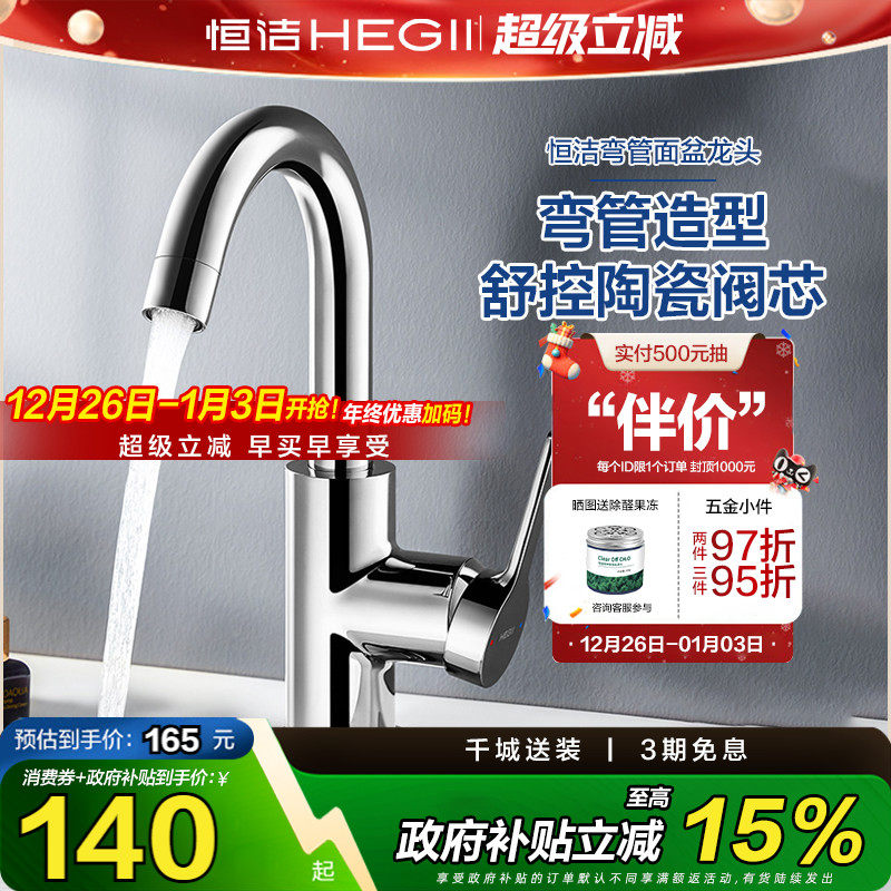 HEGII/恒洁卫浴面盆水龙头洗手盆家用健康龙头单冷单孔2600-12