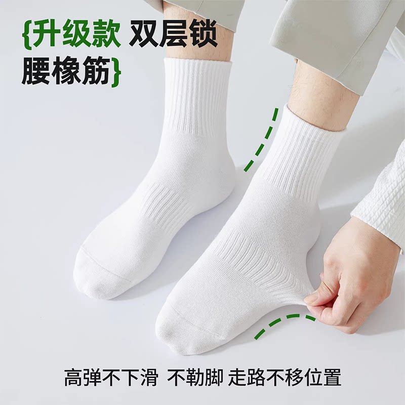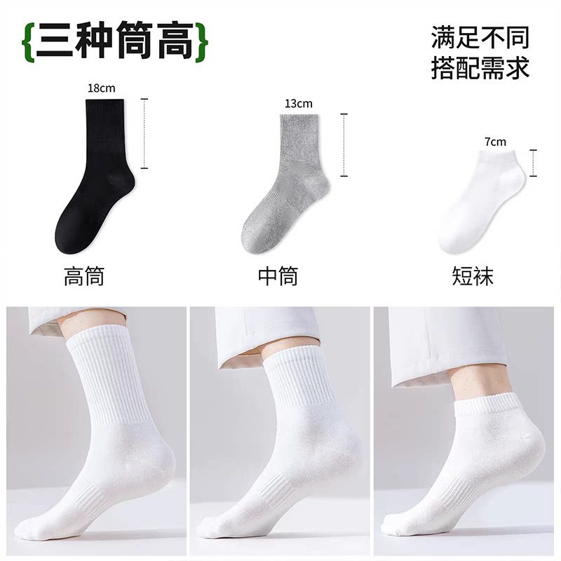 袜子男款纯棉吸汗中短筒袜青少年运动防臭男女学生长袜白色ins潮