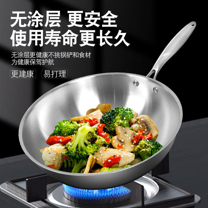 苏泊尔德国不锈钢炒锅圆底304加厚无涂层不沾锅家用炒锅电磁炉a4