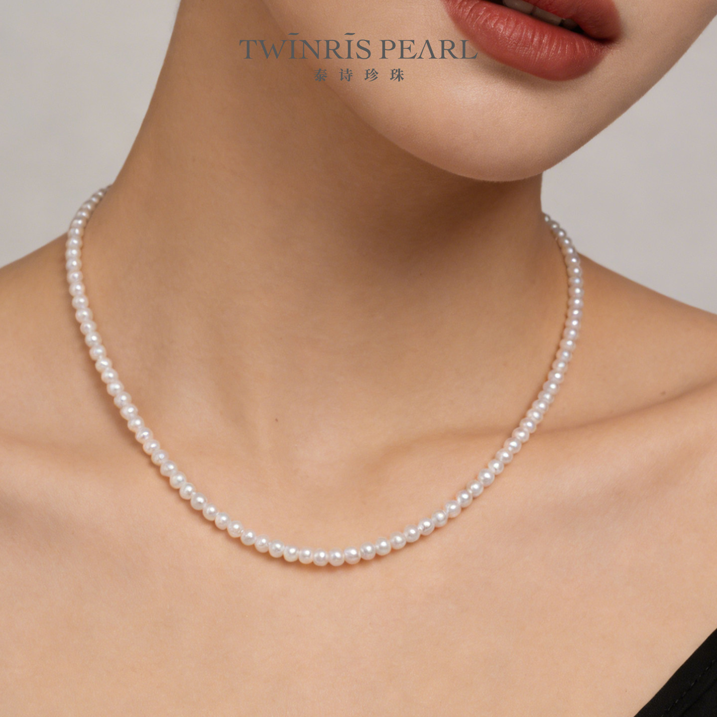 泰诗珍珠淡水珍珠小米链项链时尚简约款式3-4mm
