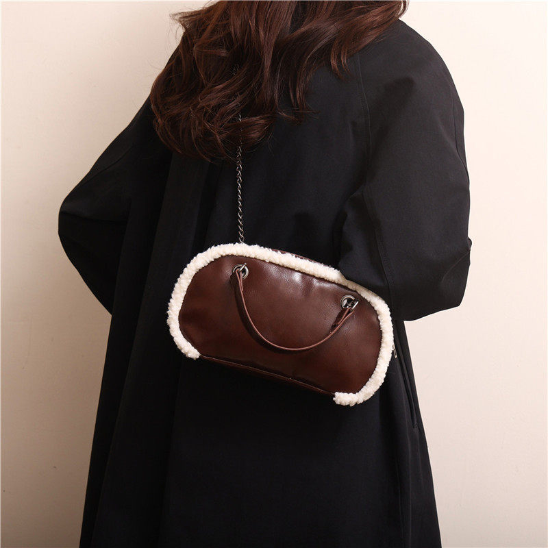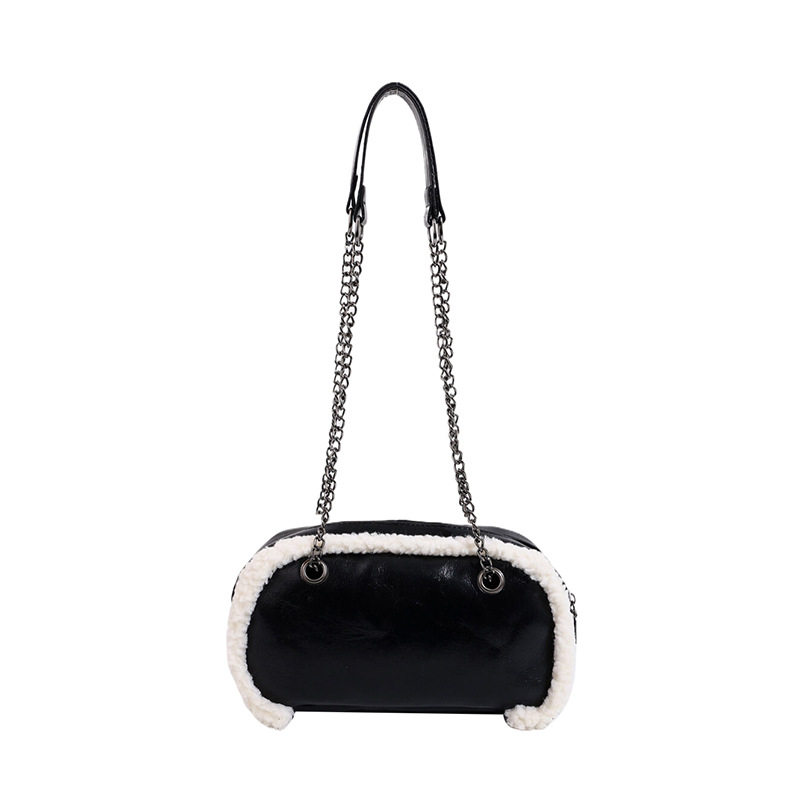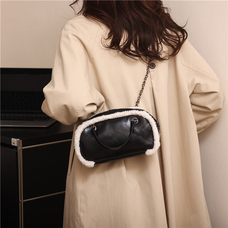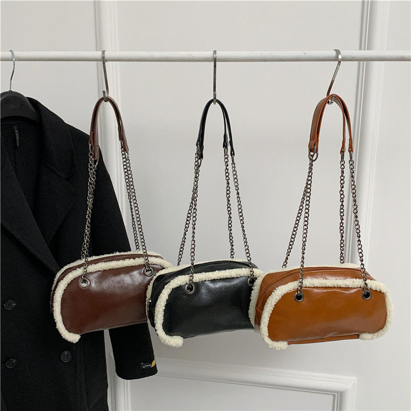 2025冬季新款包包女简约复古斜挎小方包羊羔毛链条纯色斜挎单肩包
