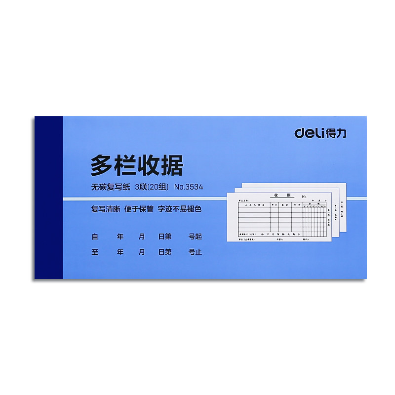 得力10本装收据本二联三联单栏多栏无碳复写账簿单据簿加厚现金收据条收款本餐饮小票财务会计用品付款票据单
