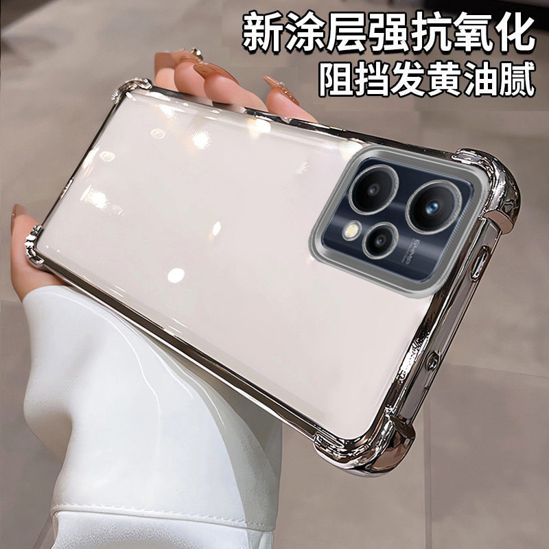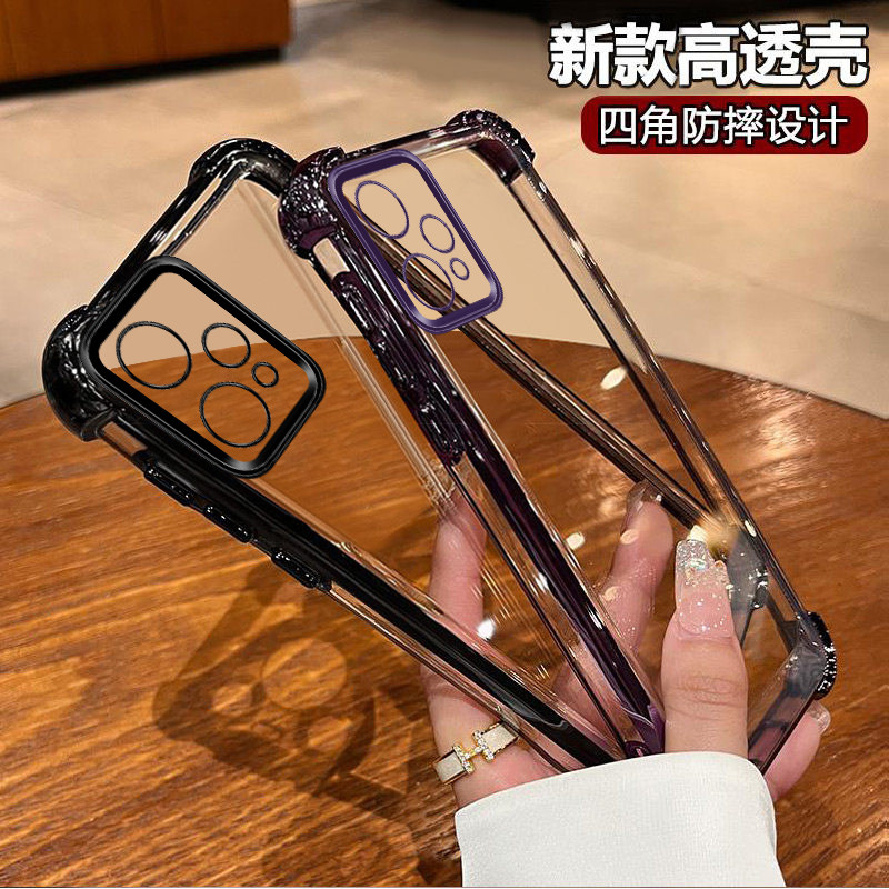 真我v25手机壳新款四角气囊硅胶防摔时尚镜头全包软壳适用realme9pro高级感奢华强抗氧化简约电镀透明手机壳
