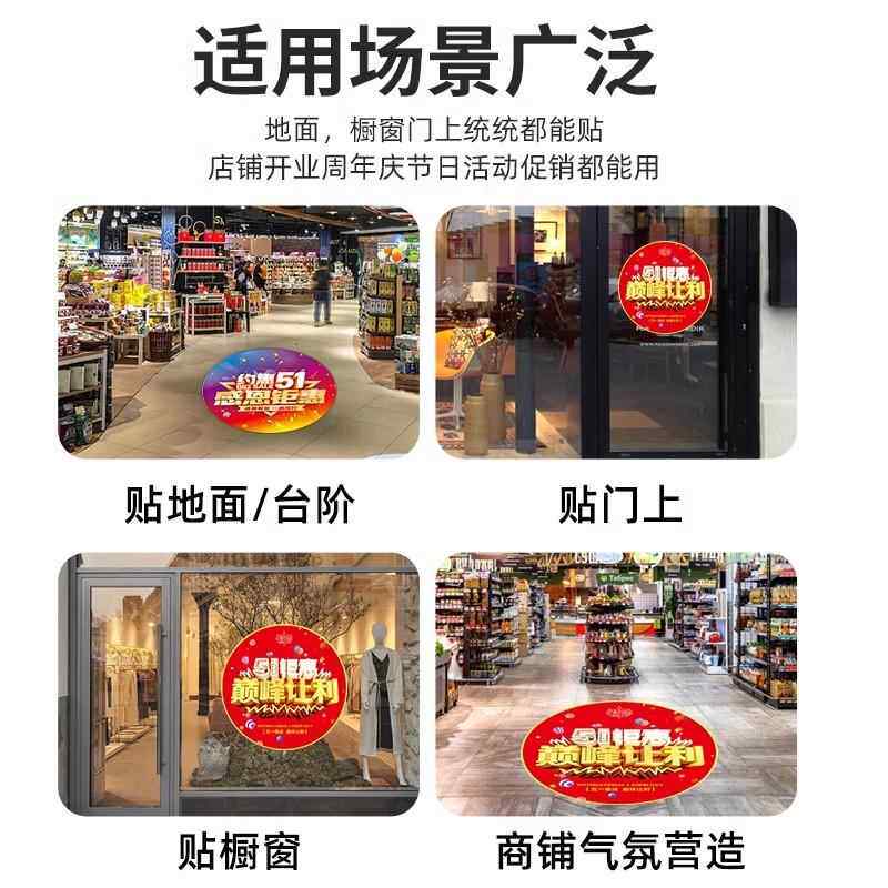 夏季新品年中大促圆形地板贴广告定制盛大开业周年庆典户外防水耐磨
