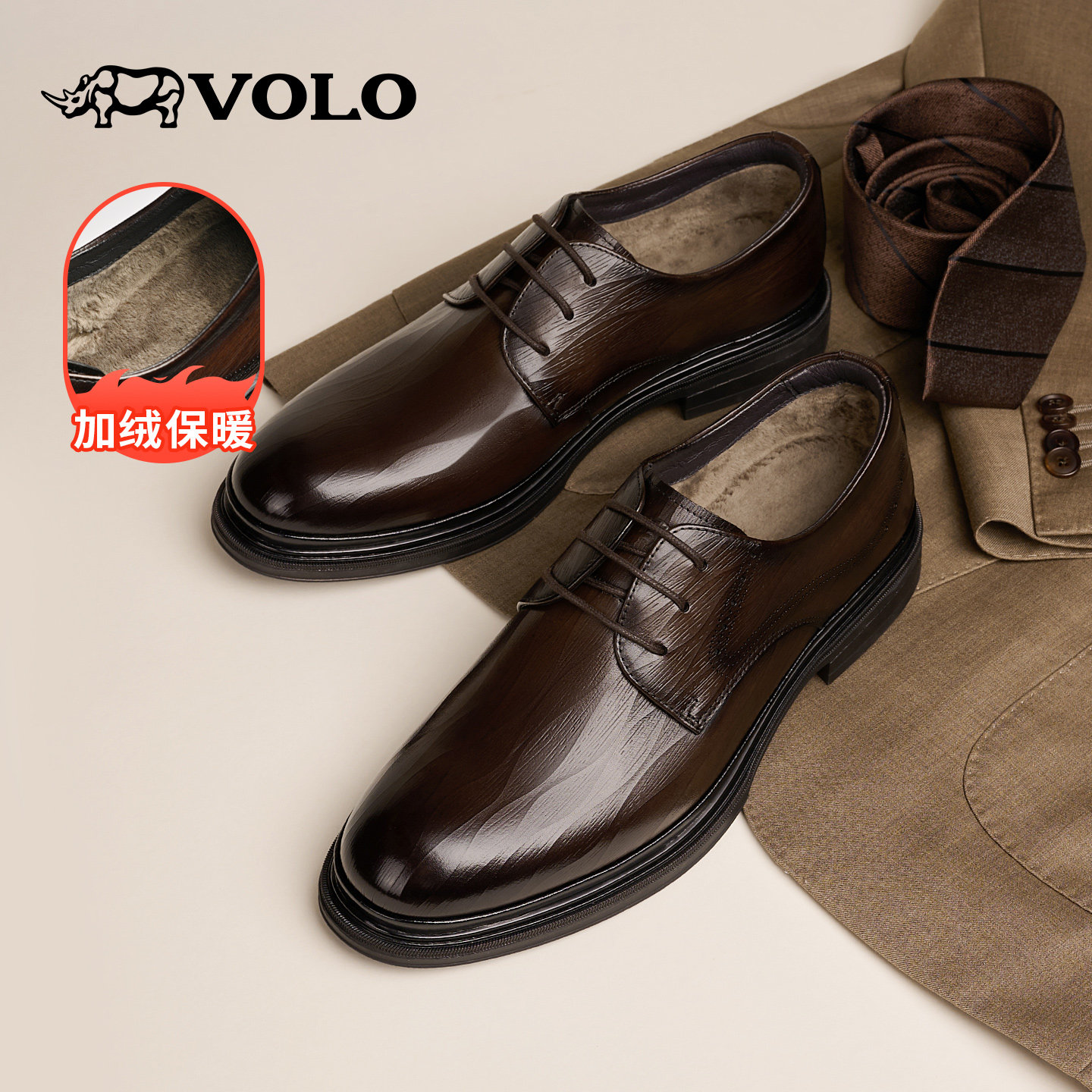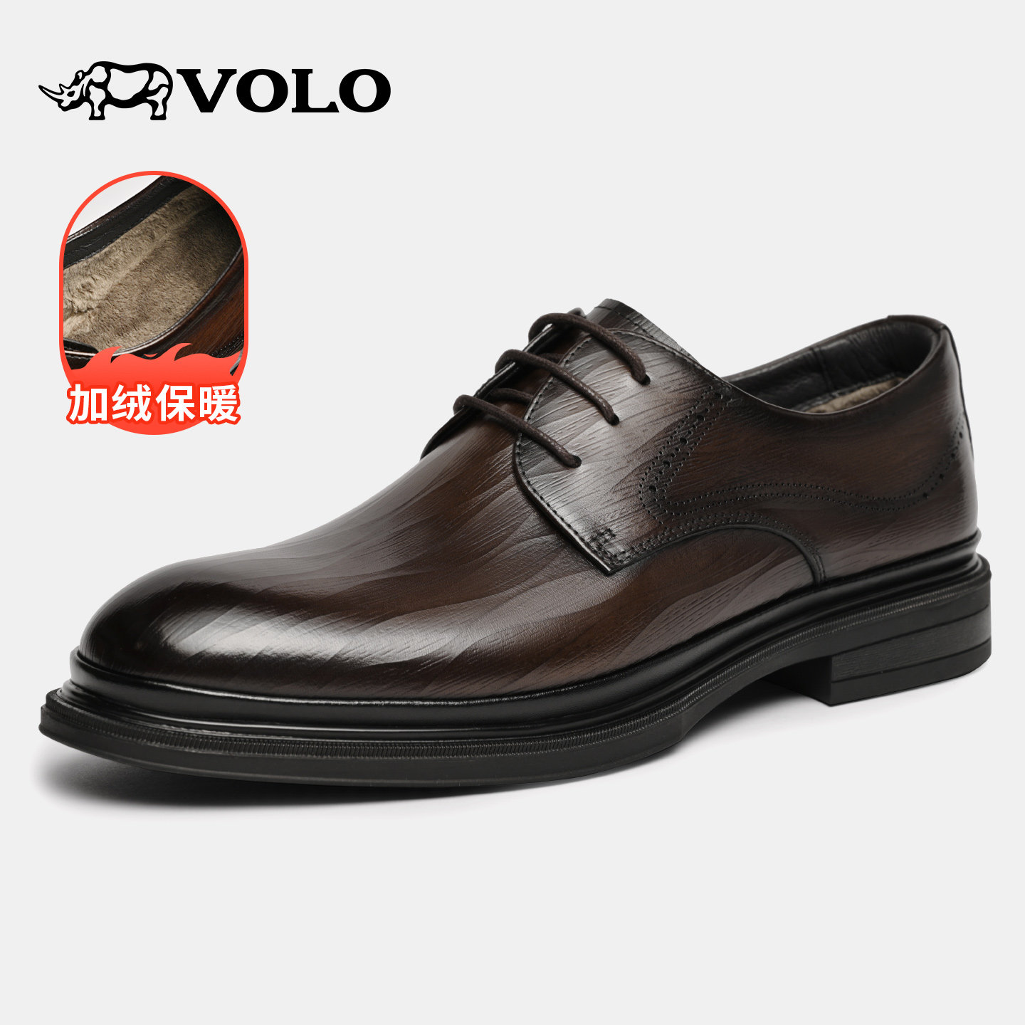 VOLO/犀牛皮鞋男款2025新款冬季加绒保暖男士正装商务真皮德比鞋