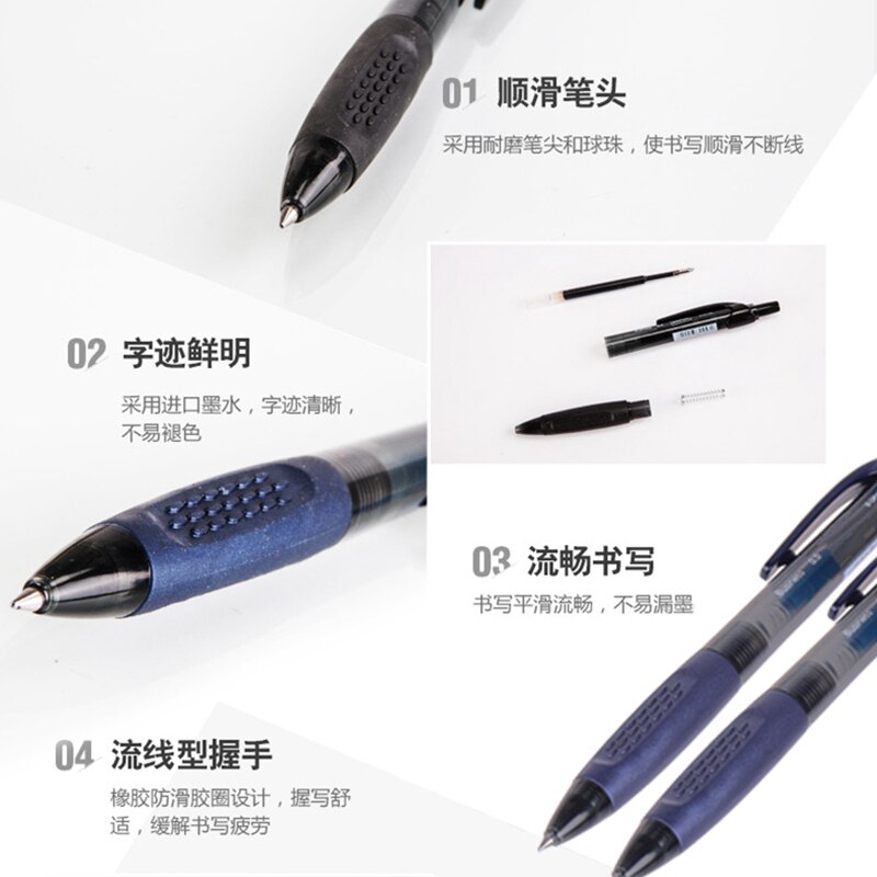 史泰博YD GP1003按动笔黑色0.5水笔笔芯学生用练字黑笔按动式圆珠笔