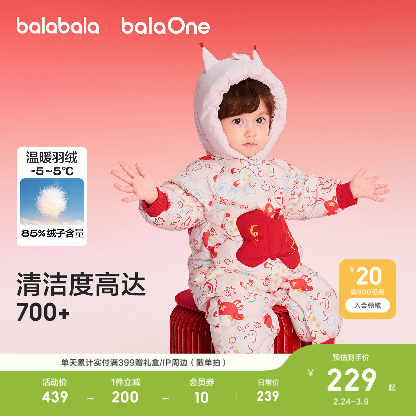 巴拉巴拉童装婴儿羽绒连体衣2026新冬装宝宝衣服外出服红色拜年服