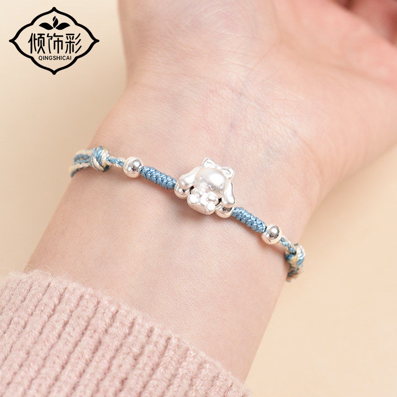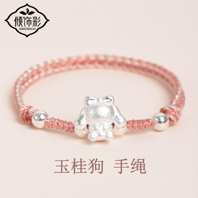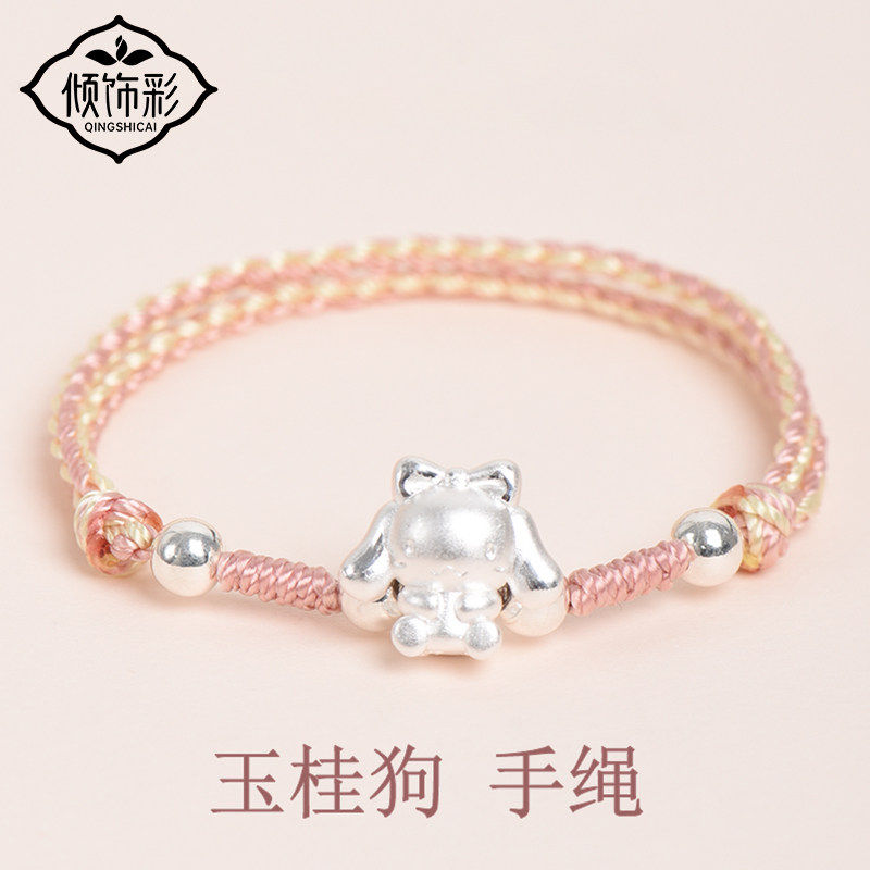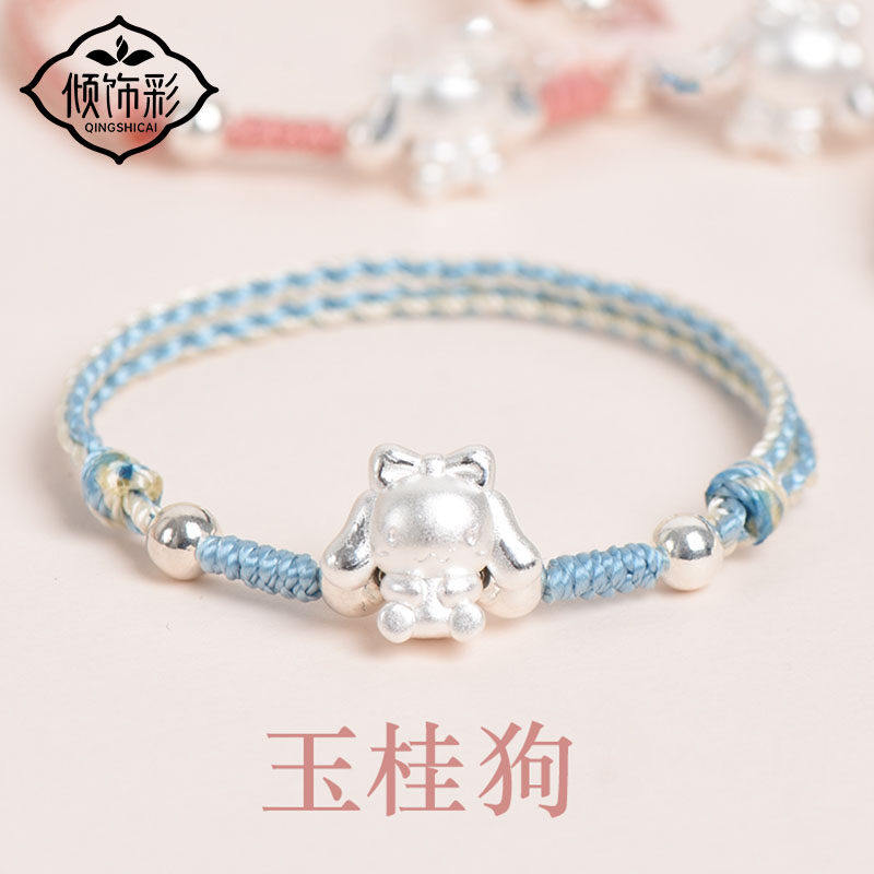足银手绳玉桂狗手链手工编织可爱转运珠送小朋友儿童生日元旦礼物