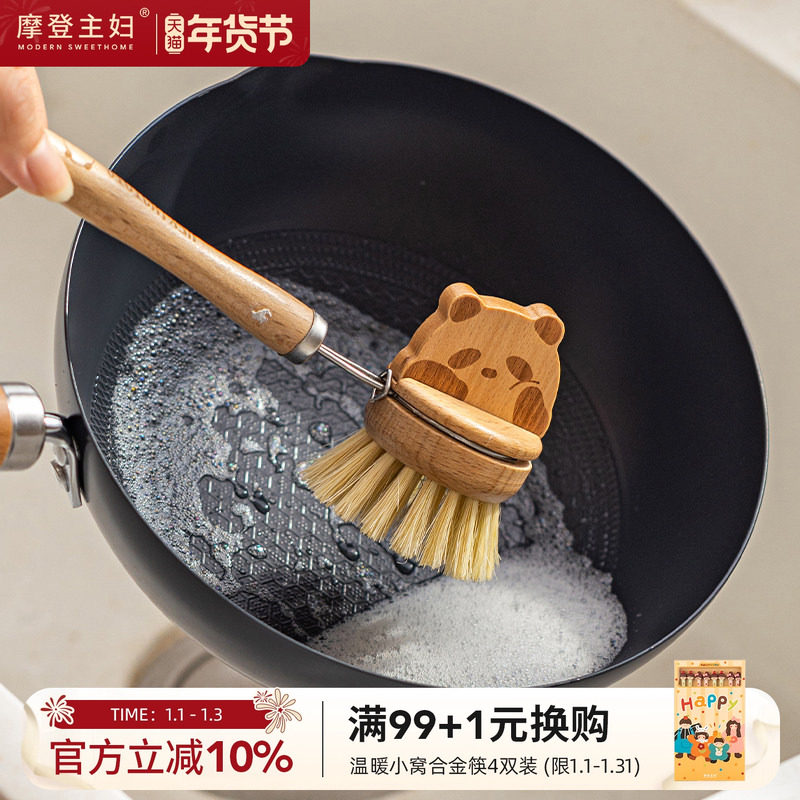 摩登主妇mototo熊猫锅刷家用刷锅神器厨房洗锅长柄多功能清洁刷子