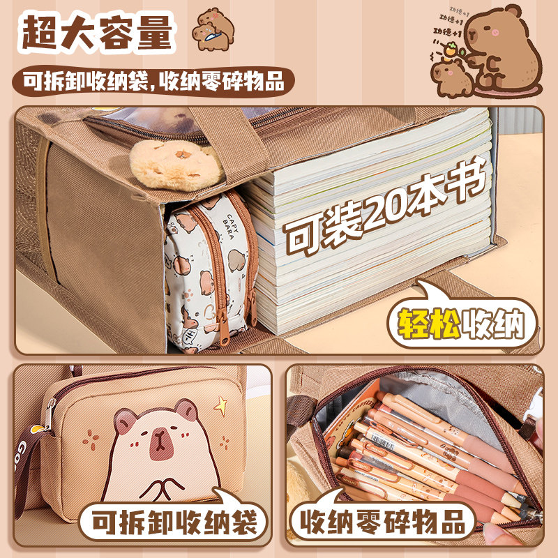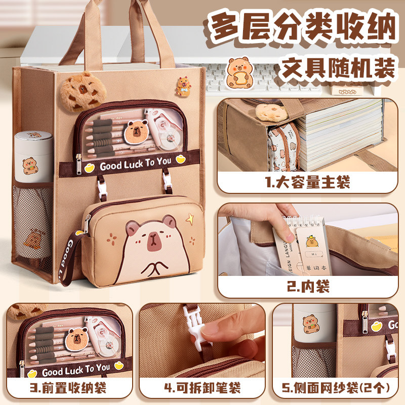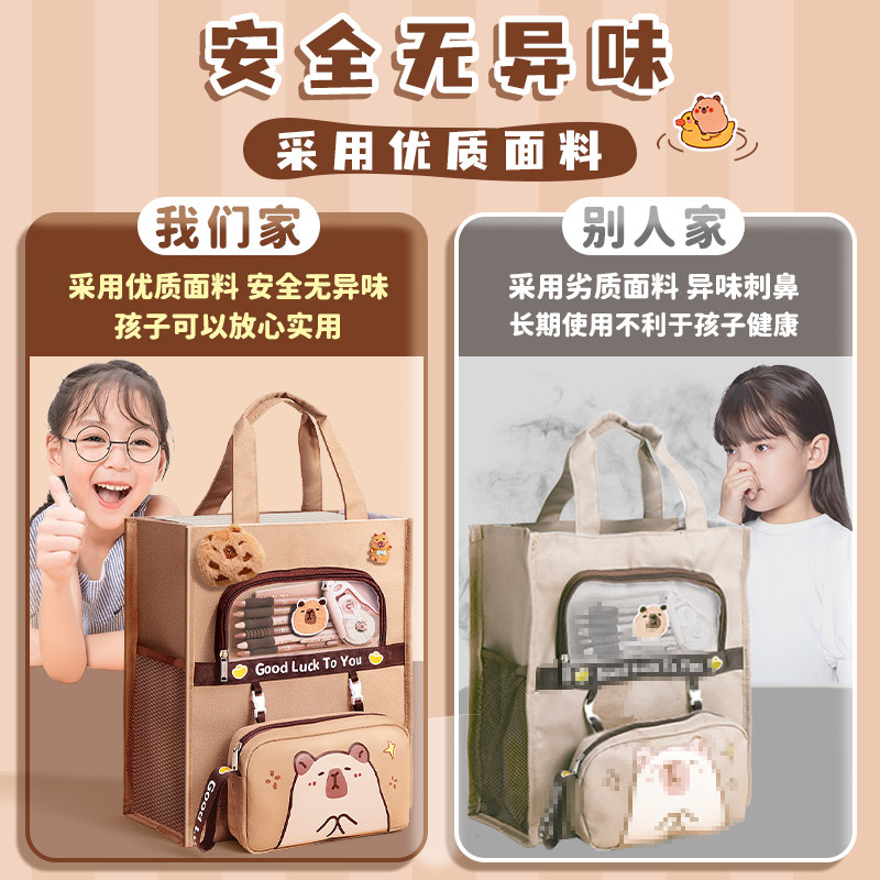 卡皮巴拉补习袋手提袋学生拎书袋小学生补课包儿童女孩帆布美术袋作业收纳袋初中男生用补习手提书包大容量