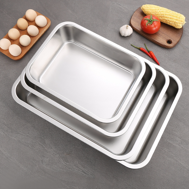 不锈钢平底方盆长方形蒸饭托盘自助餐盆平底饺子菜盘加厚烤鱼方盘