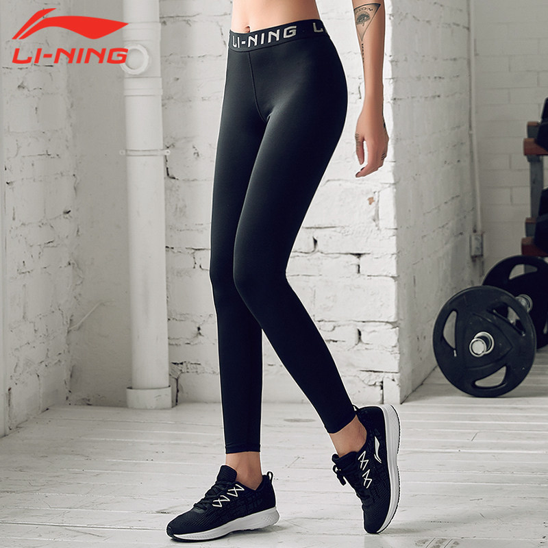 李宁紧身裤女弹力长裤跑步运动裤速干健身裤瑜伽裤训练打底lining