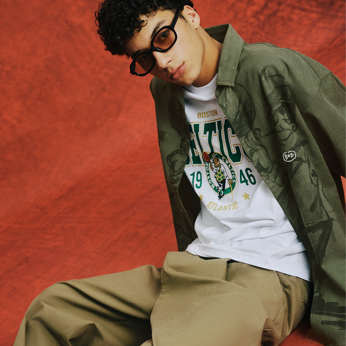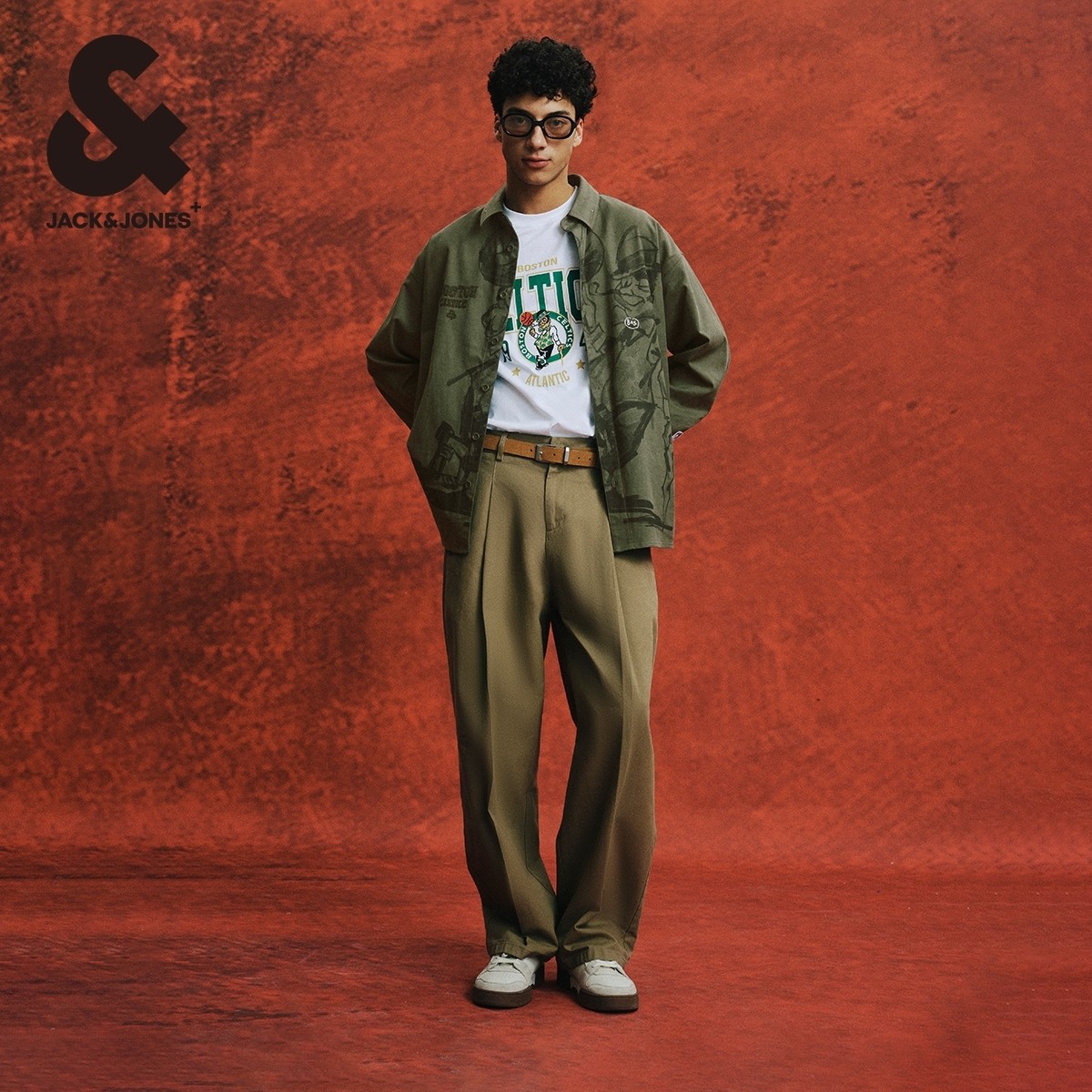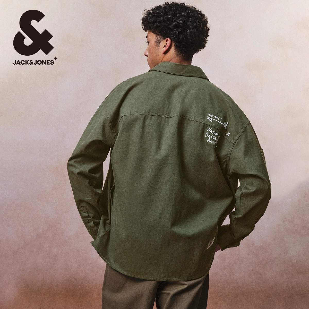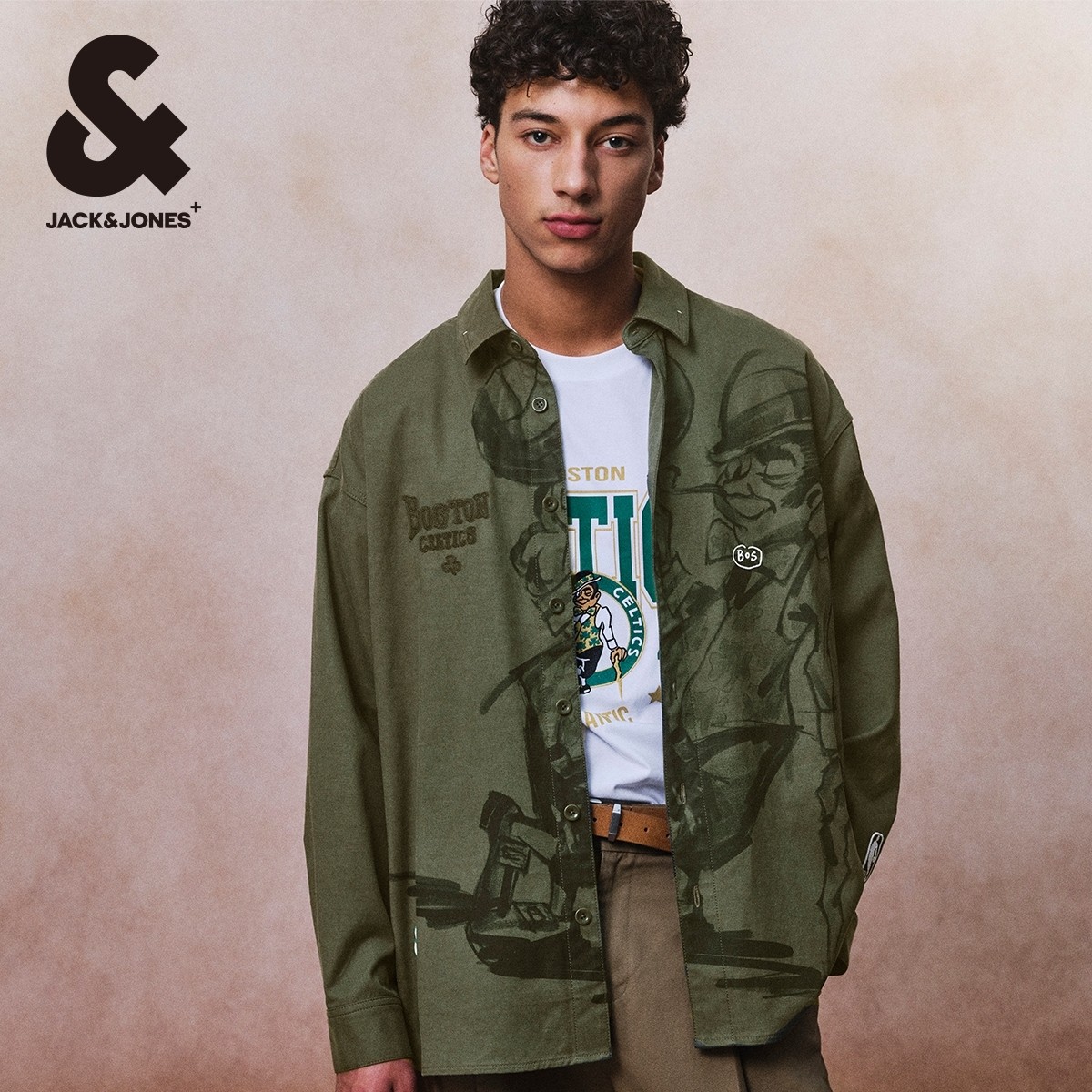 杰克琼斯秋季新款NBA联名凯尔特人队刺绣装饰潮流长袖衬衫男装